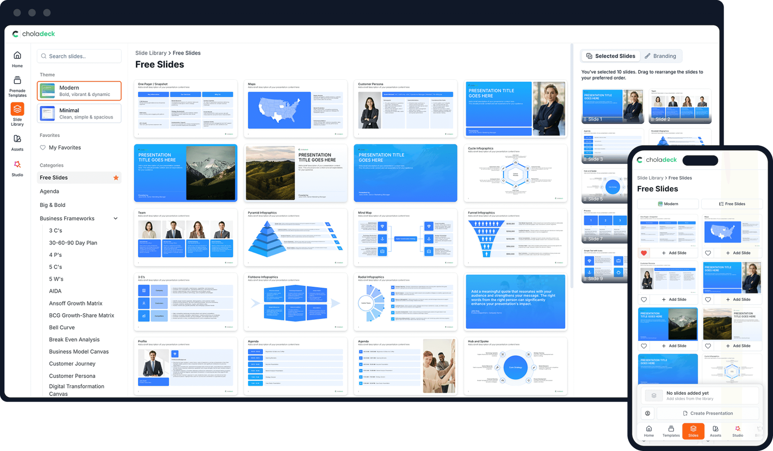 You deliver amazing presentations, thanks to expertly designed slide templates and frameworks.