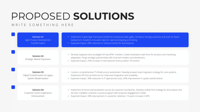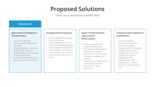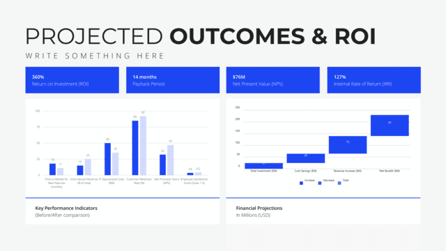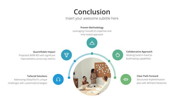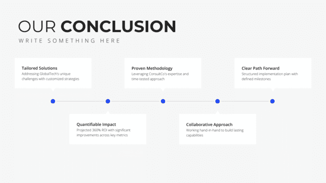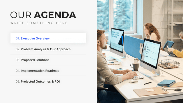 Offer a snapshot of your project or proposal with the Executive Summary slide. Designed to present key points, objectives, and outcomes in a concise manner, it sets the stage for deeper dives into specific areas. It’s essential for capturing attention and providing a quick overview of the topic at hand.