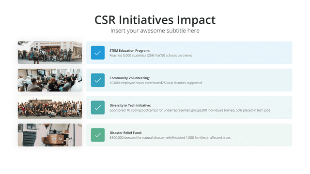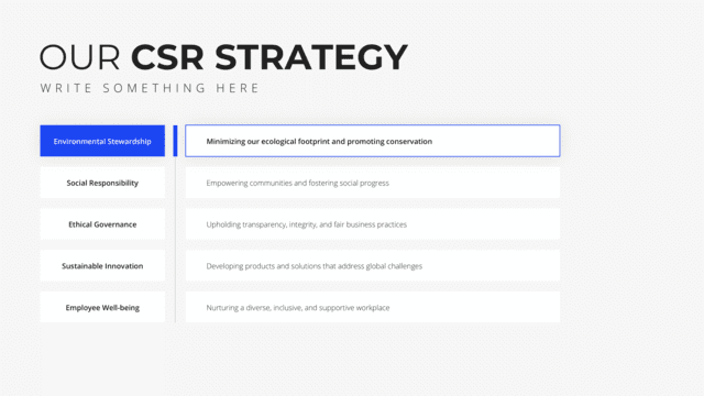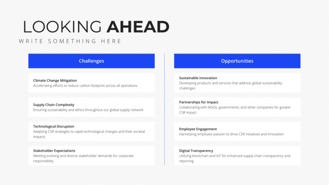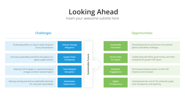 Elevate your corporate image with our thoughtfully designed Corporate Social Responsibility Presentation Template. Crafted to inspire and inform, this template offers a comprehensive framework to highlight your company’s ethical practices, sustainability initiatives, and community engagement efforts. Each slide is purposefully structured to demonstrate your organization’s commitment to social and environmental responsibility, ensuring your CSR story resonates with stakeholders, employees, and the wider community.