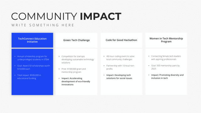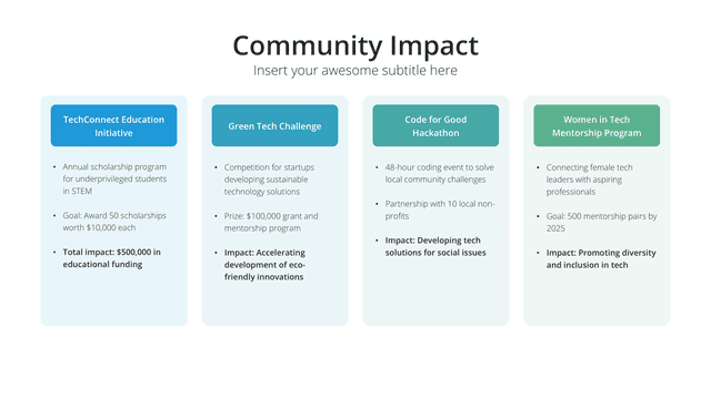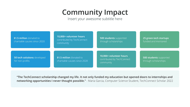 Replace text and image placeholders with your content effortlessly. Customize using tools like Powerpoint, Google Slides, or Keynote and present proudly.
