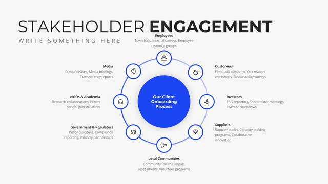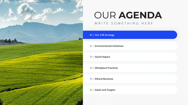 Guide your audience from start to finish with the Agenda slide. This slide is meticulously structured to outline all key talking points, ensuring clarity and setting the stage for the entire presentation. It ensures a smooth flow, keeping the audience engaged, informed, and aligned with the session’s objectives, fostering a cohesive experience.