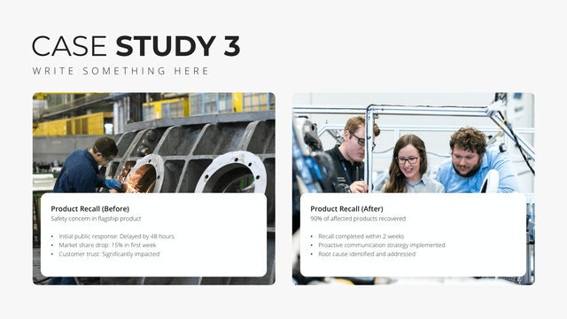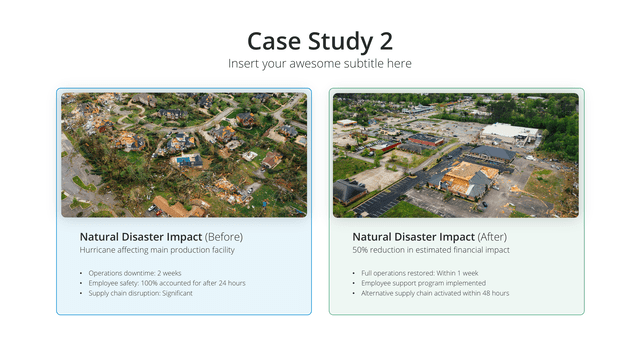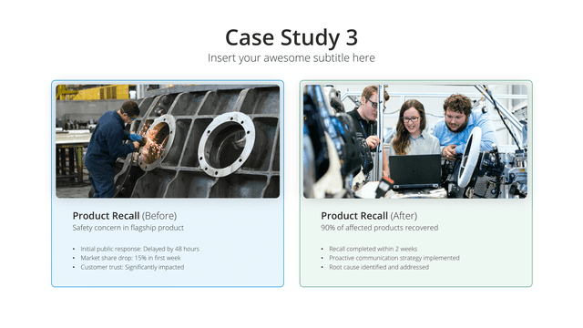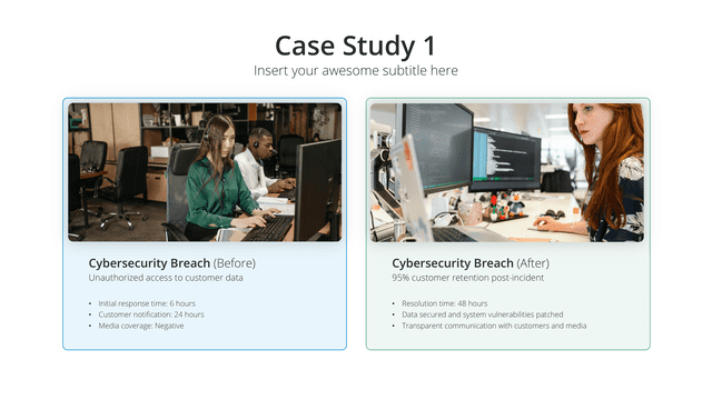 Delve into detailed success narratives with the Case Study slide. Tailored for comprehensive views of challenges, solutions, and outcomes, this slide stands as a testament to capabilities. It’s perfect for showcasing client success stories, project outcomes, or research results, building credibility and trust.