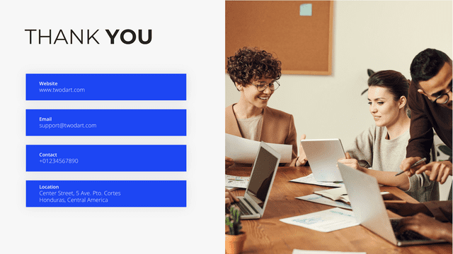 Conclude your presentation on a gracious note with the Thank You slide. It leaves a positive impression, acknowledges the audience’s time, and fosters goodwill.