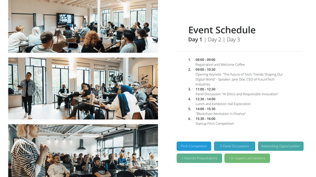 Replace text and image placeholders with your content effortlessly. Customize using tools like Powerpoint, Google Slides, or Keynote and present proudly.