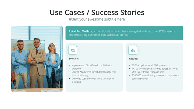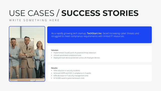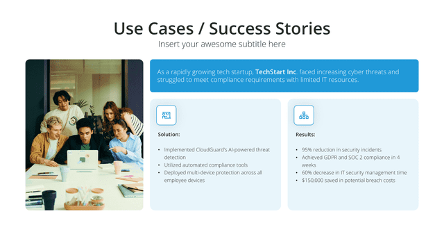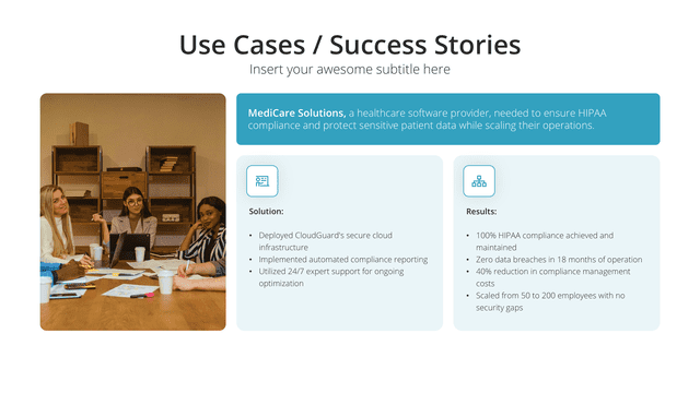 Delve into detailed success narratives with the Case Study slide. Tailored for comprehensive views of challenges, solutions, and outcomes, this slide stands as a testament to capabilities. It’s perfect for showcasing client success stories, project outcomes, or research results, building credibility and trust.