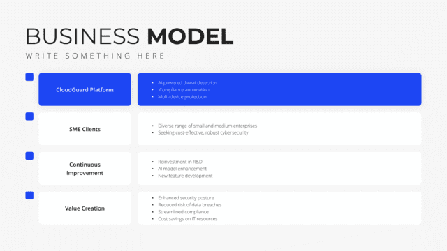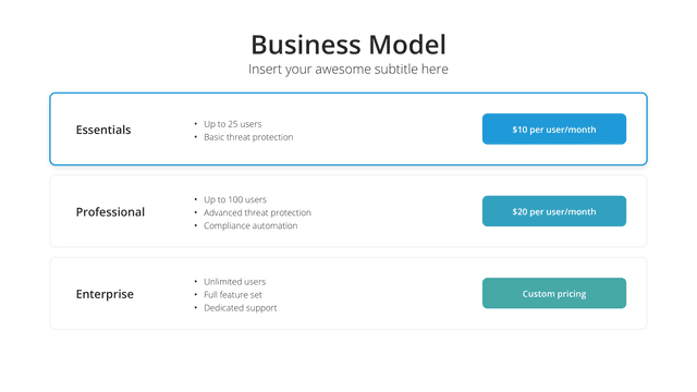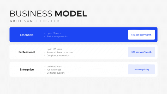 Illuminate the core mechanics of your business with the Business Model slide. Tailored to detail how your organization creates, delivers, and captures value, it provides a bird’s-eye view of operations and strategy. It clarifies revenue streams, value propositions, and key partners, ensuring stakeholders grasp the essence of your business approach.