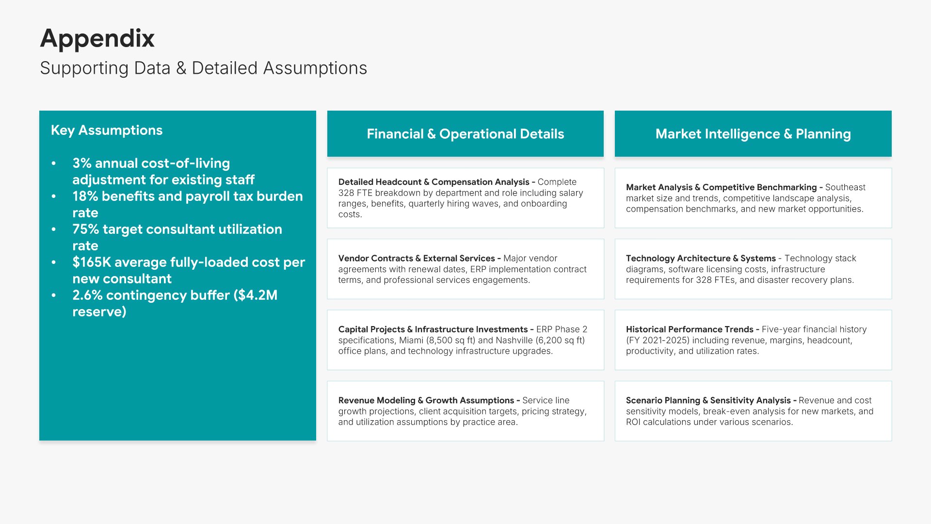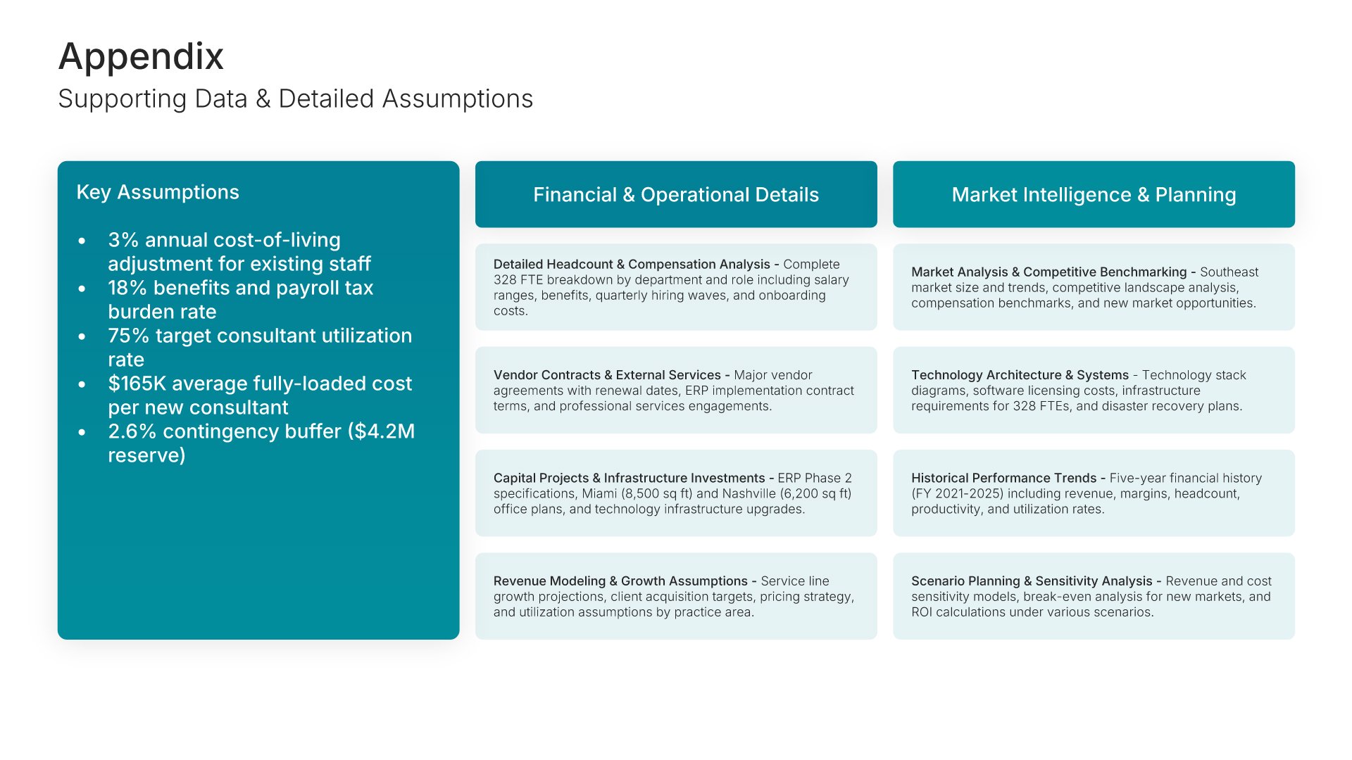 Appendix slides help you provide supporting details without cluttering your main presentation. Use them to include backup data, detailed calculations, additional charts, and reference materials. Ideal for any presentation where stakeholders may want to dig deeper into the specifics behind your key points.