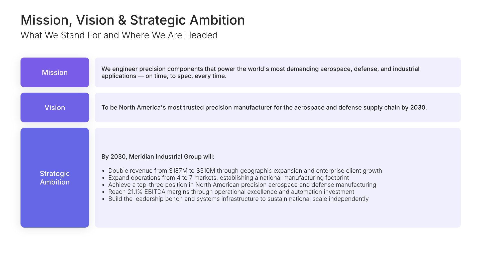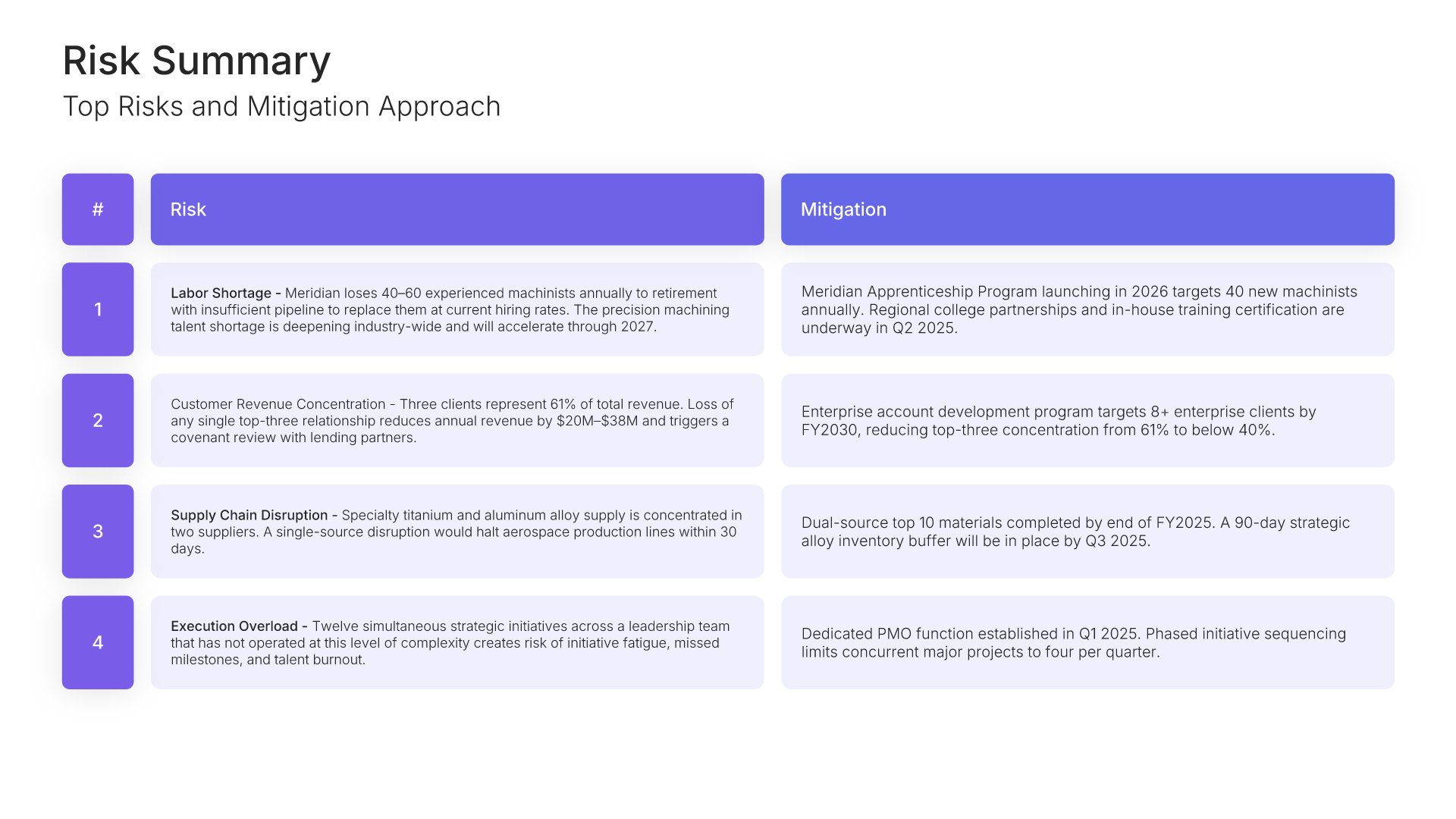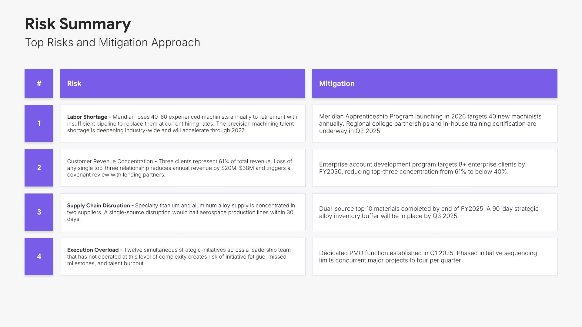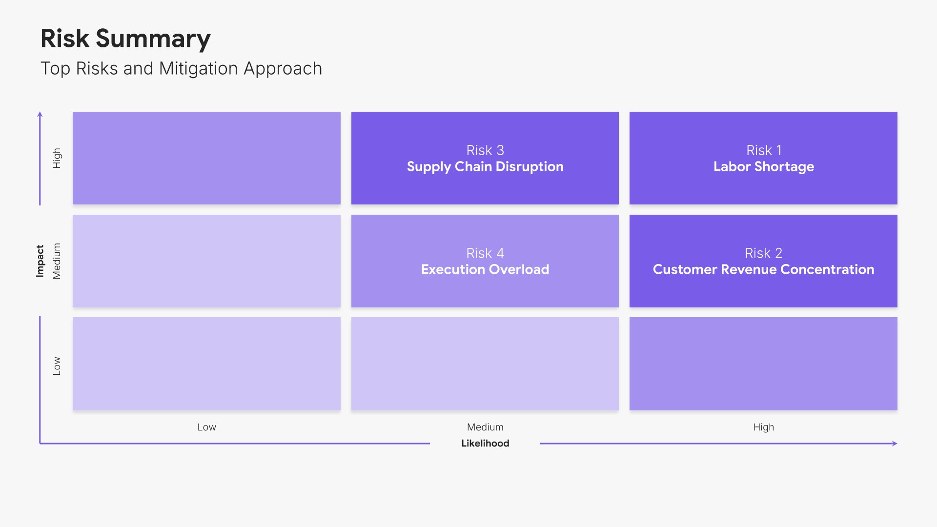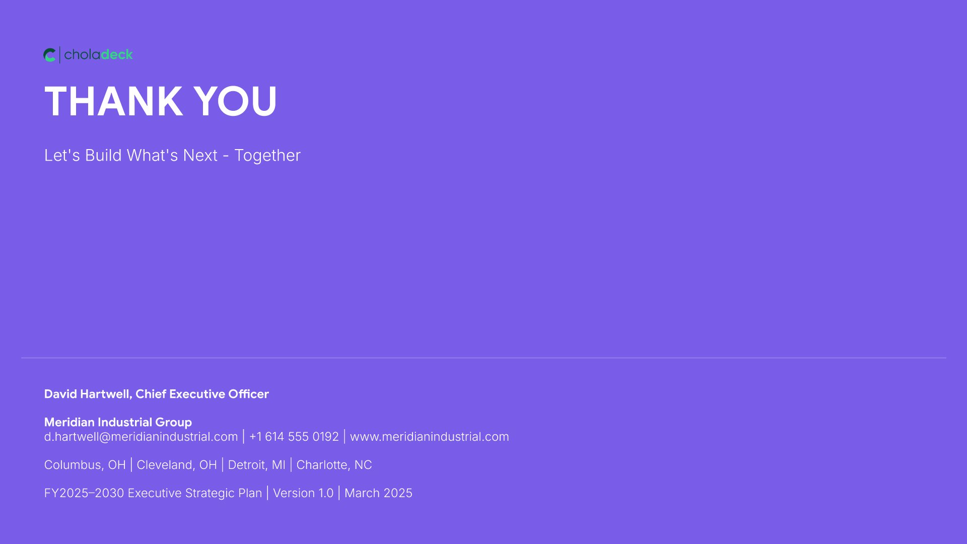 A streamlined executive strategic plan template designed for board and C-suite audiences who need the full strategy at a glance. Built on the Board-Ready Model, this presentation covers strategic overview, market position, vision, priorities, roadmap, investment, risks, financial outlook, and governance. Ideal for board-level strategy reviews.