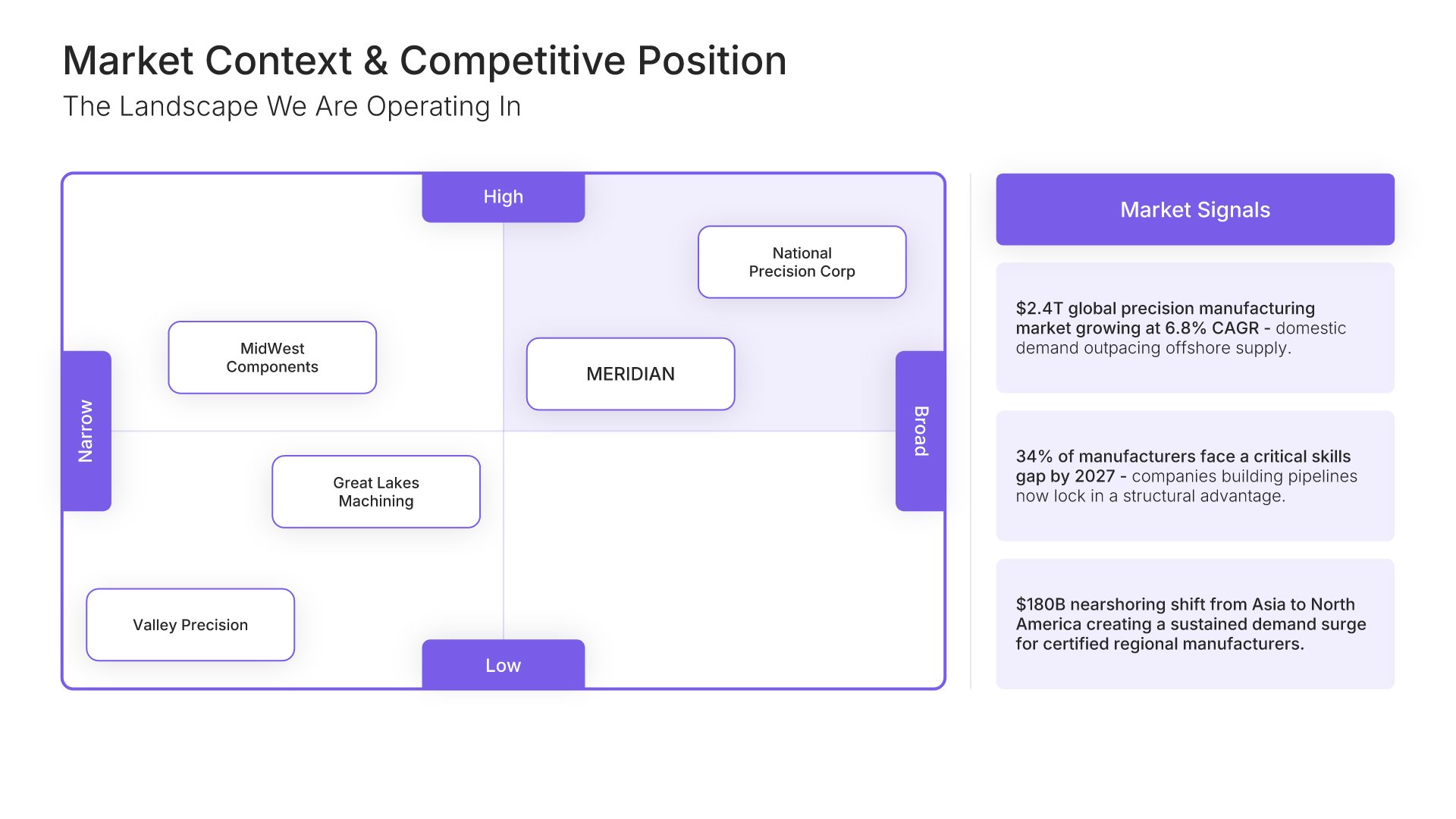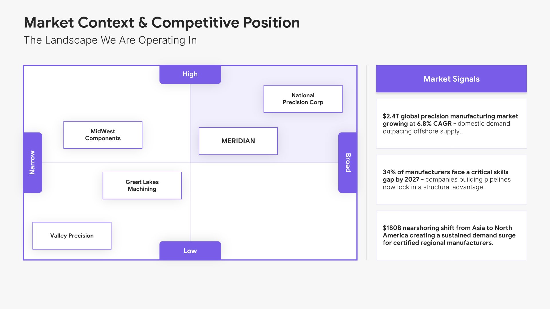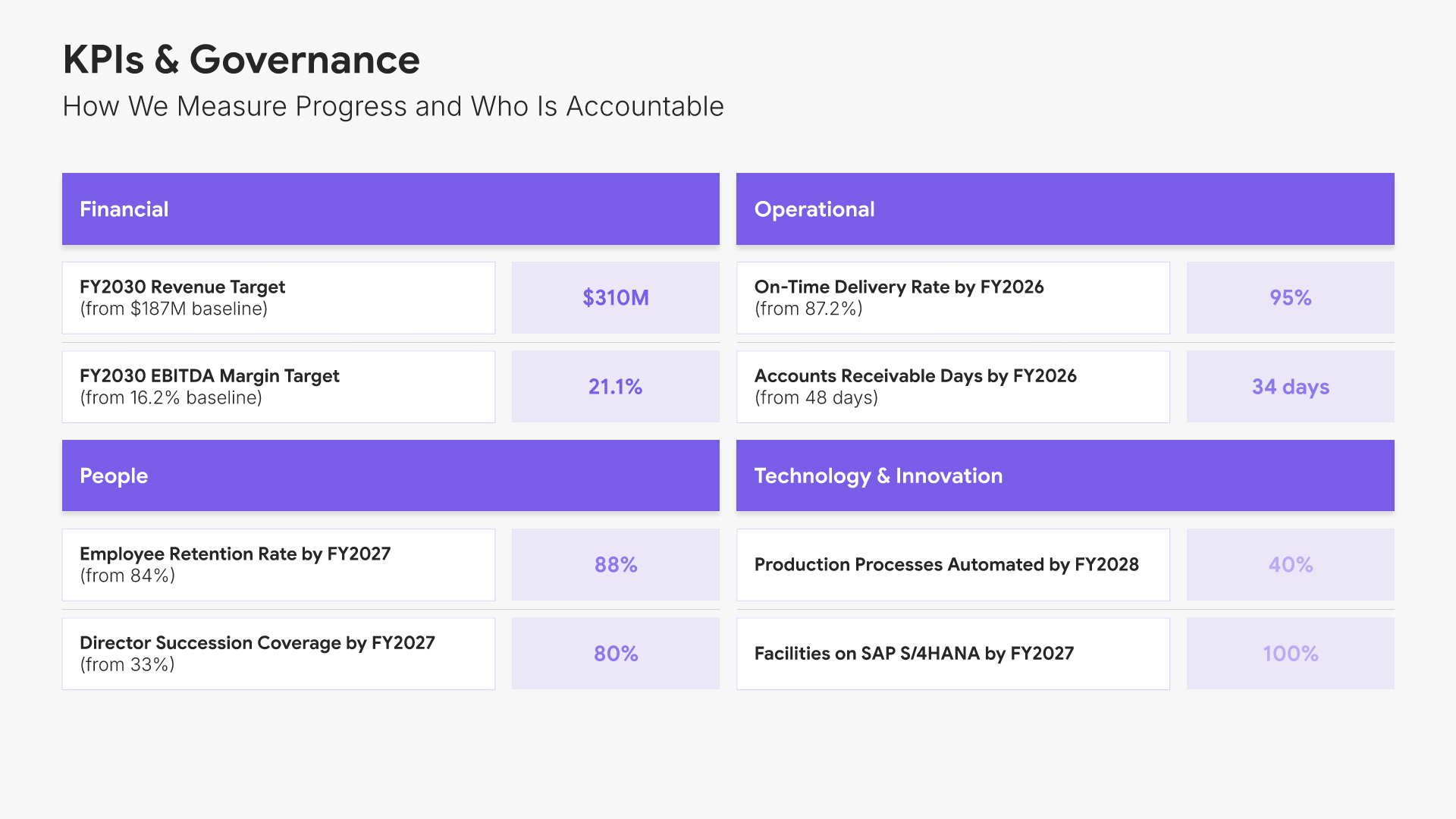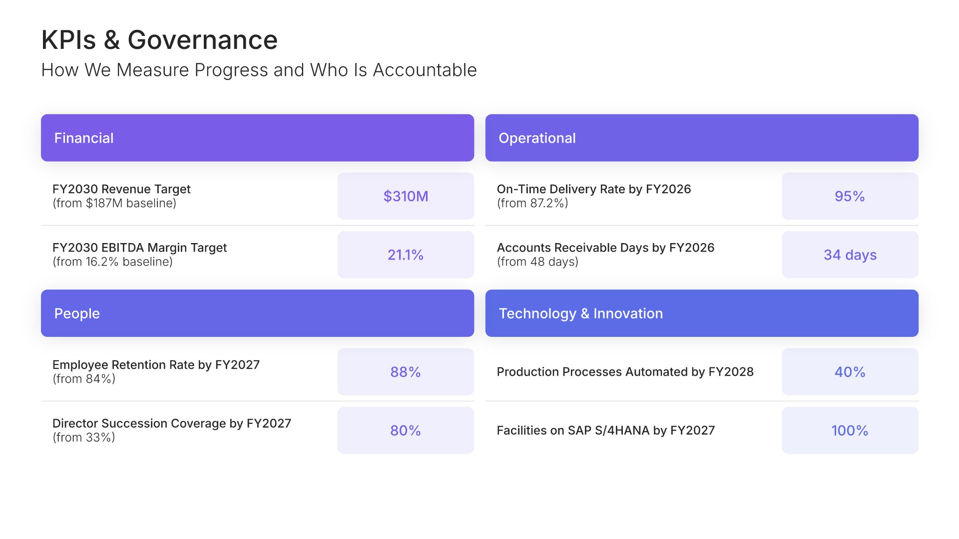 A streamlined executive strategic plan template designed for board and C-suite audiences who need the full strategy at a glance. Built on the Board-Ready Model, this presentation covers strategic overview, market position, vision, priorities, roadmap, investment, risks, financial outlook, and governance. Ideal for board-level strategy reviews.