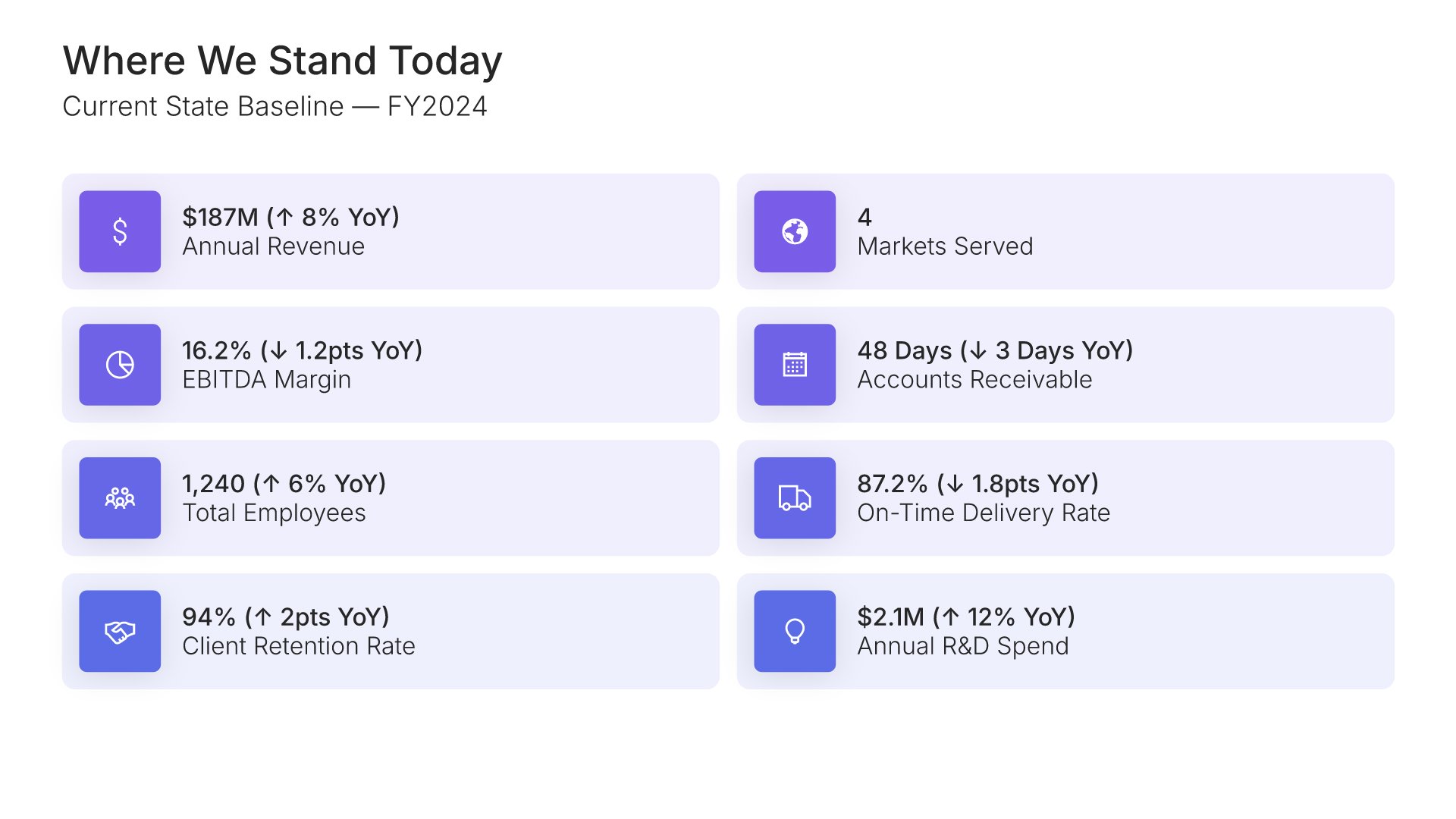 Swap icons and images instantly from our built-in libraries. Use Pointers to choose your count (2-box, 3-box, 4-box) and Variations to pick your design style. No more settling for "close enough." Get the exact slide you need.