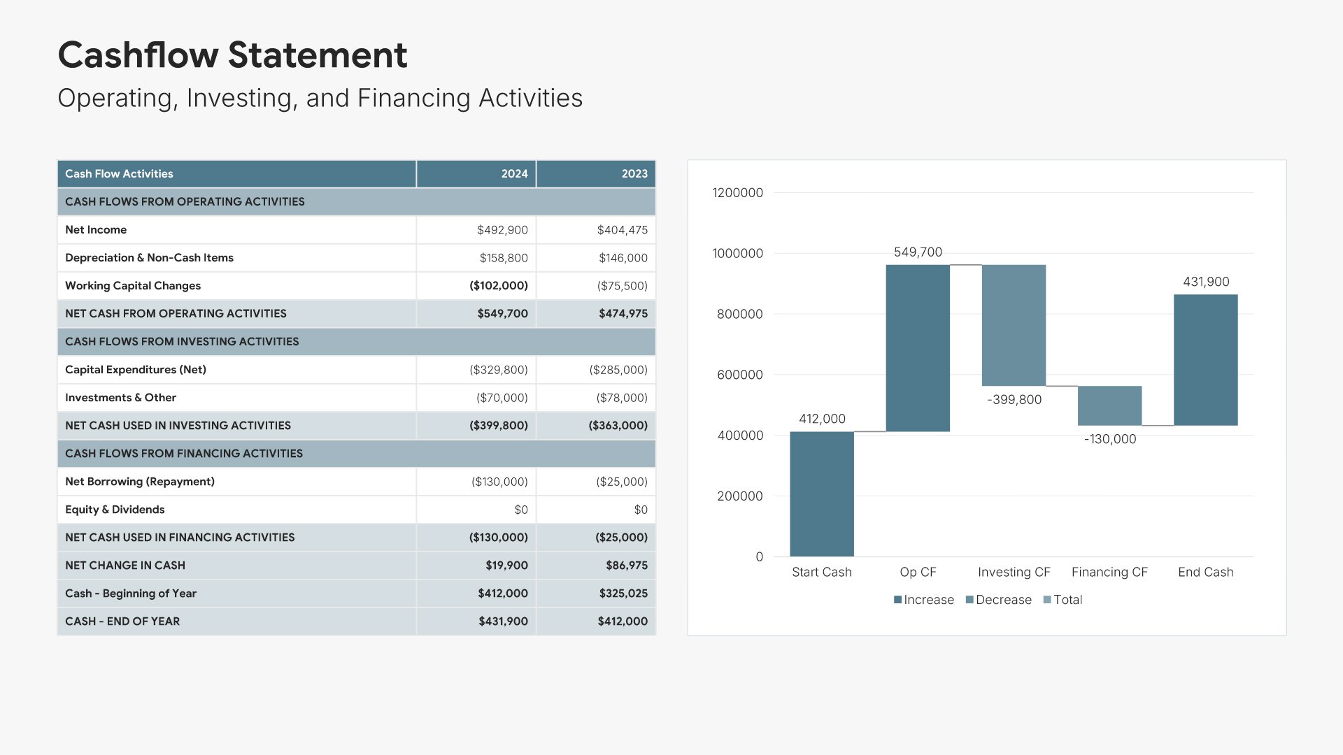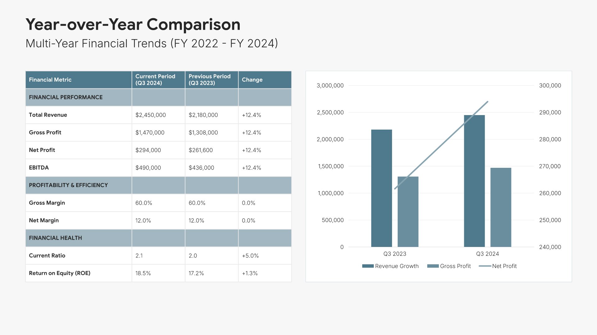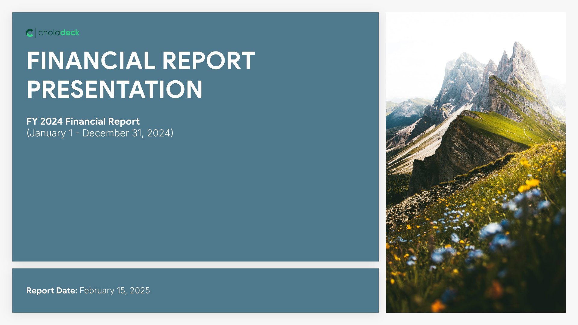 A comprehensive financial report template designed for organizations presenting annual or periodic financial results to stakeholders. Built on the Classic Financial Report framework, this presentation covers everything from income statements to cash flow analysis and future projections. Ideal for investor meetings and board presentations.
