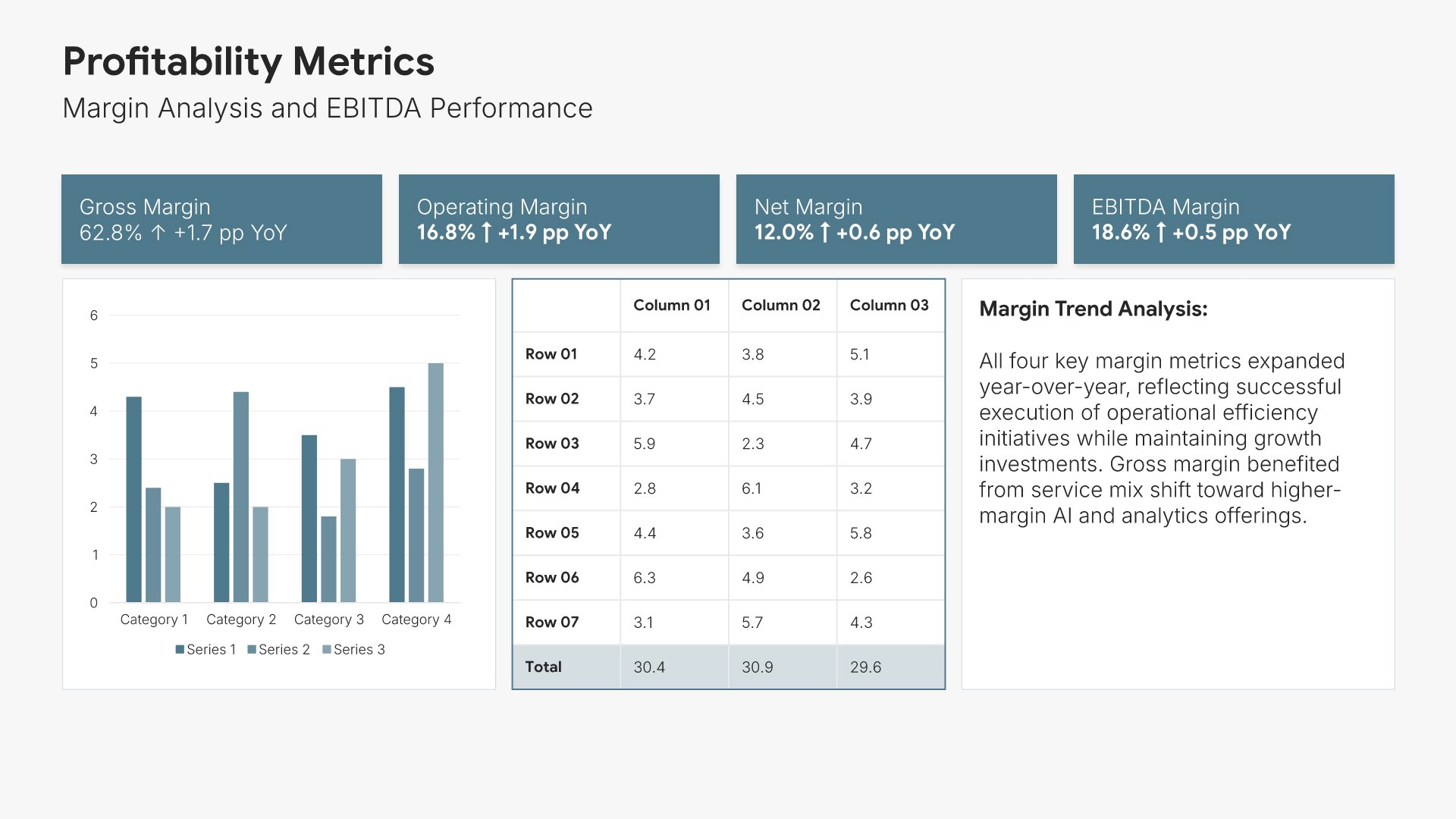 Replace text and image placeholders with your content effortlessly. Customize using tools like Powerpoint, Google Slides, or Keynote and present proudly.