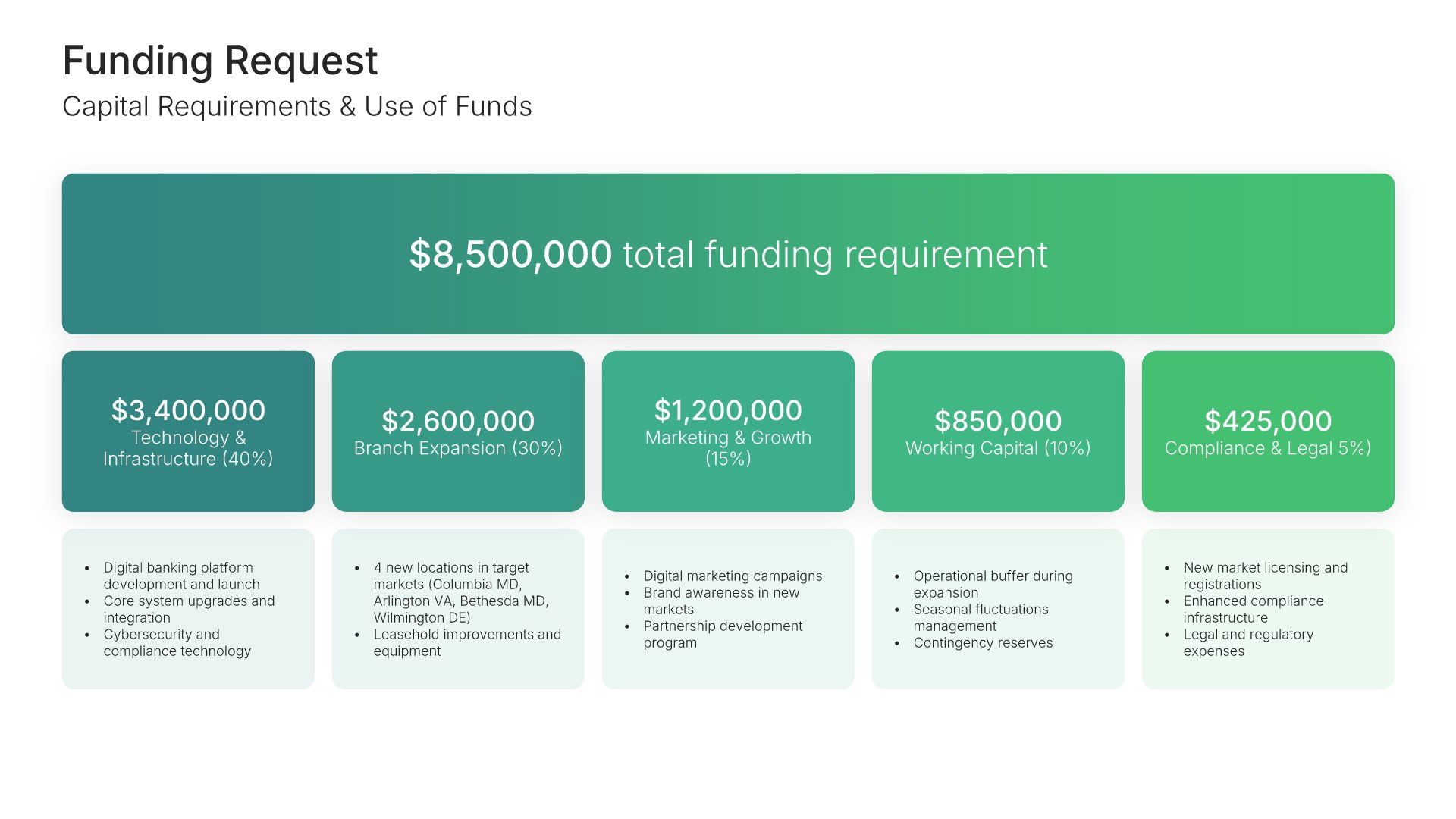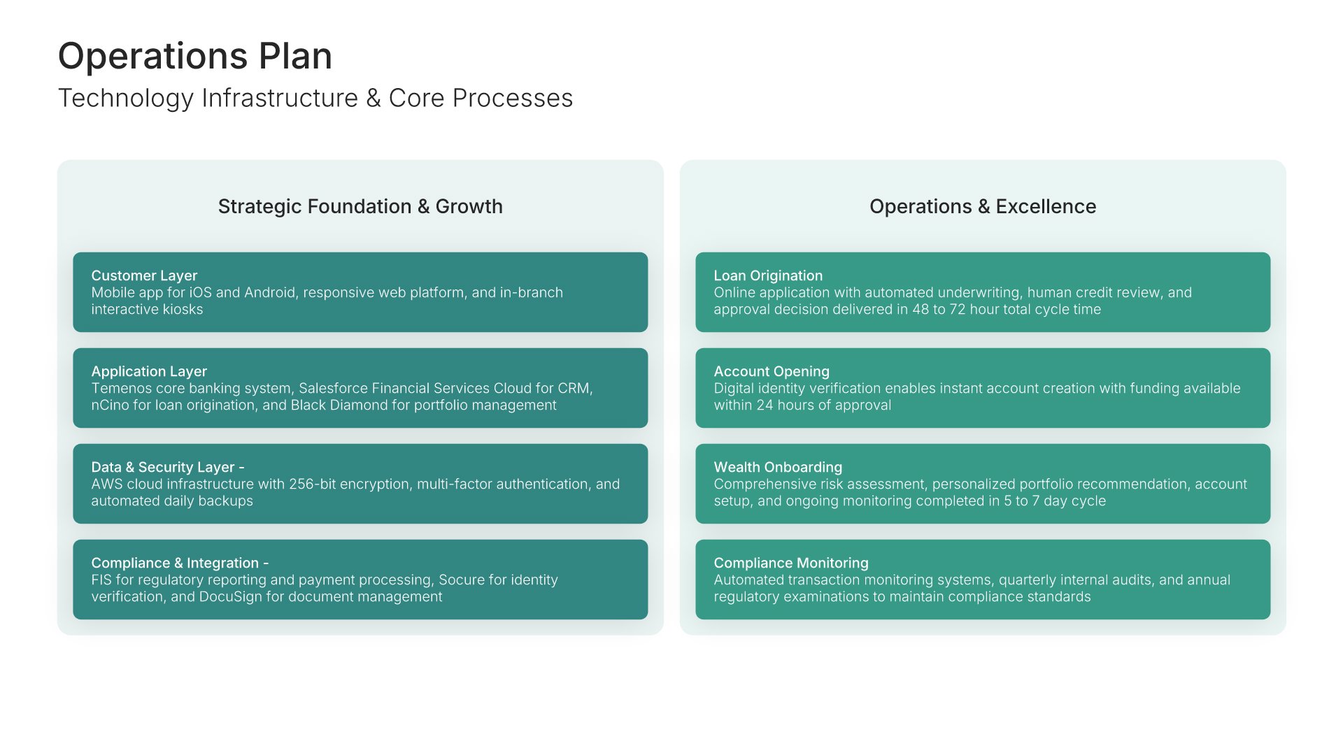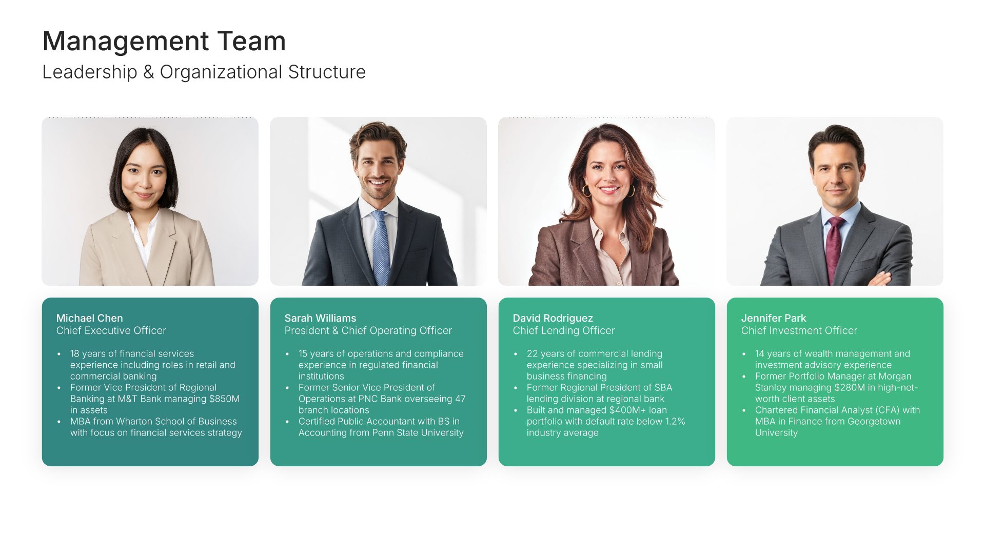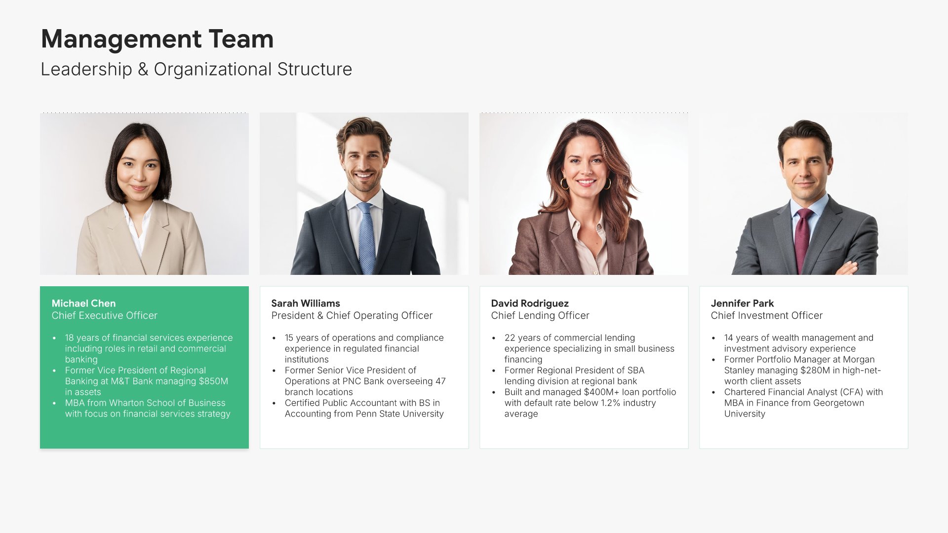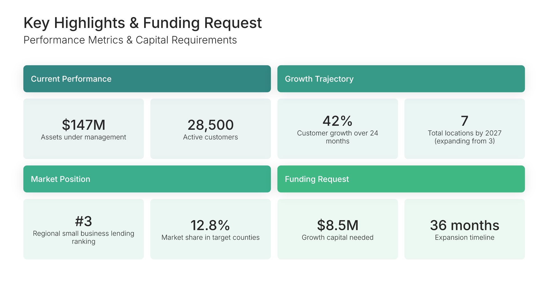 A comprehensive financial services business plan template designed for banks, wealth management firms, and financial advisory companies seeking financing or strategic growth. Built on the Classic SBA Model, this presentation covers products, market analysis, operations, compliance, and detailed financial statements. Ideal for any financial services firm at any stage.