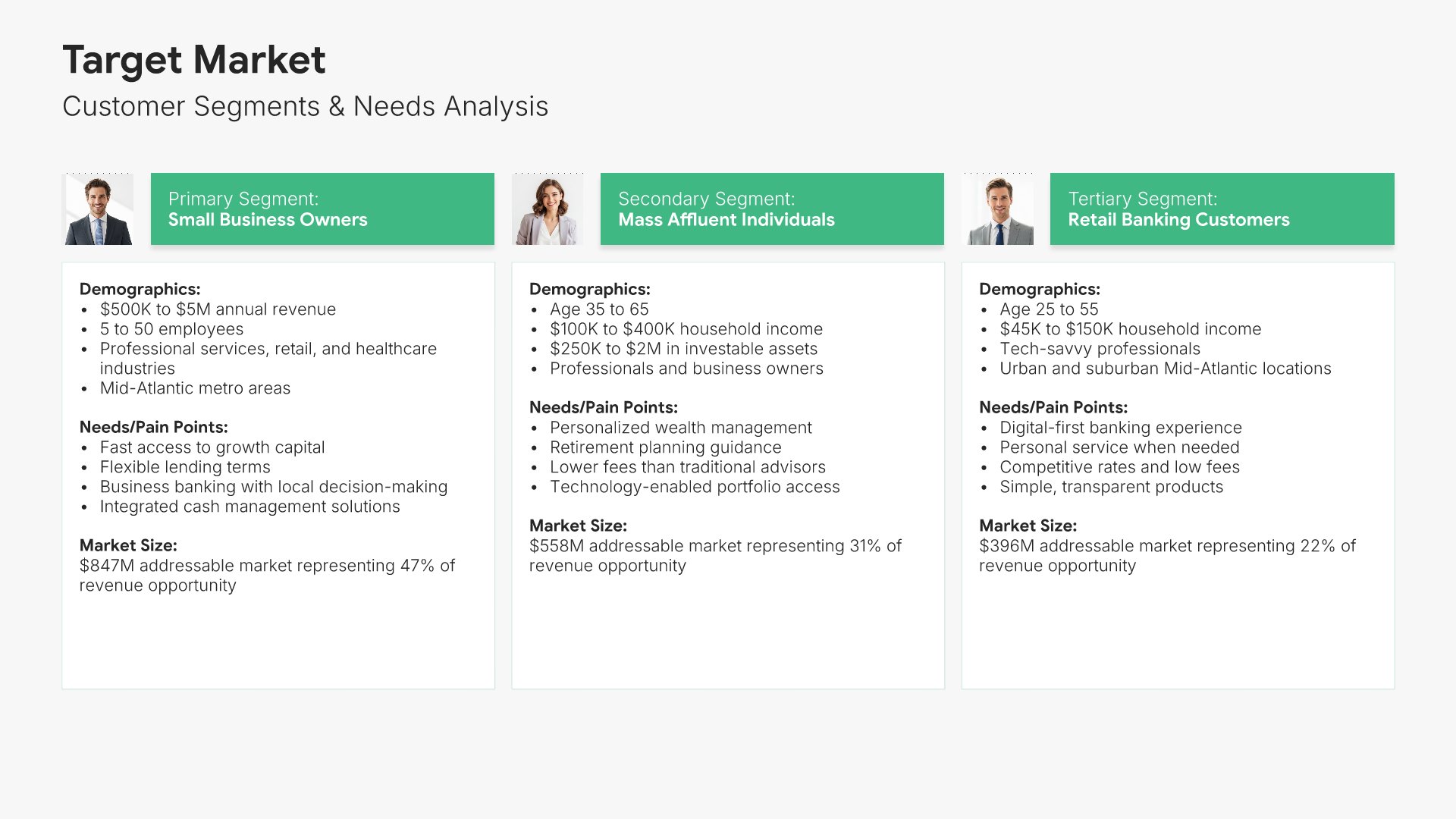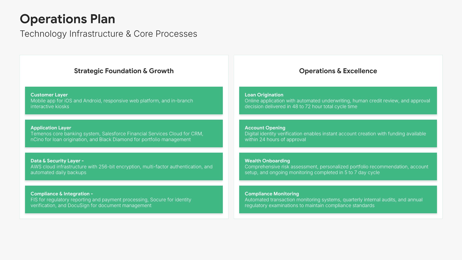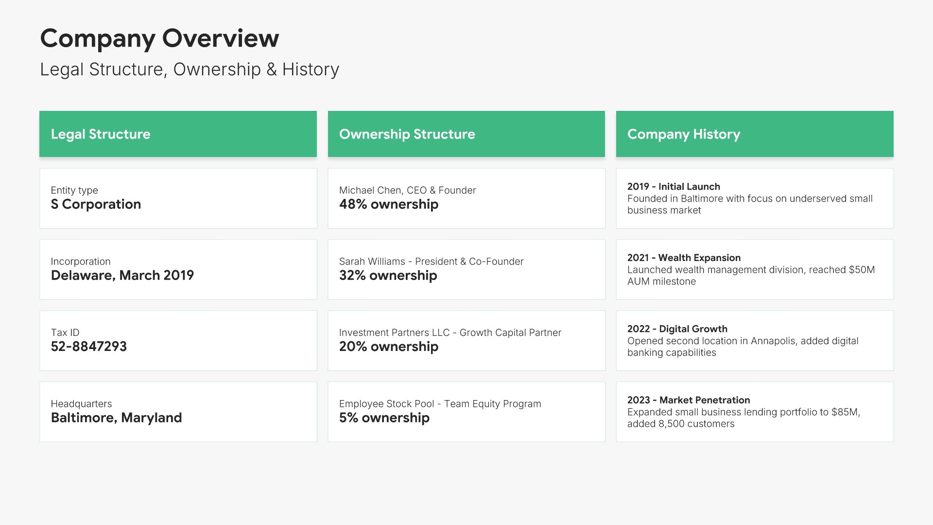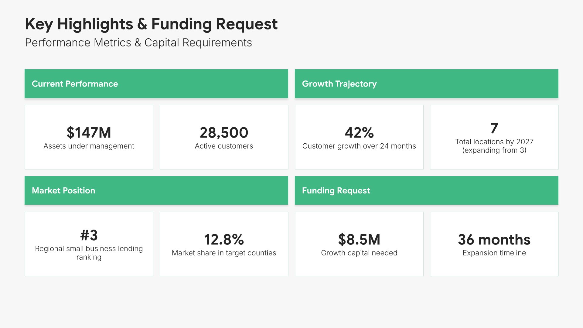 A comprehensive financial services business plan template designed for banks, wealth management firms, and financial advisory companies seeking financing or strategic growth. Built on the Classic SBA Model, this presentation covers products, market analysis, operations, compliance, and detailed financial statements. Ideal for any financial services firm at any stage.