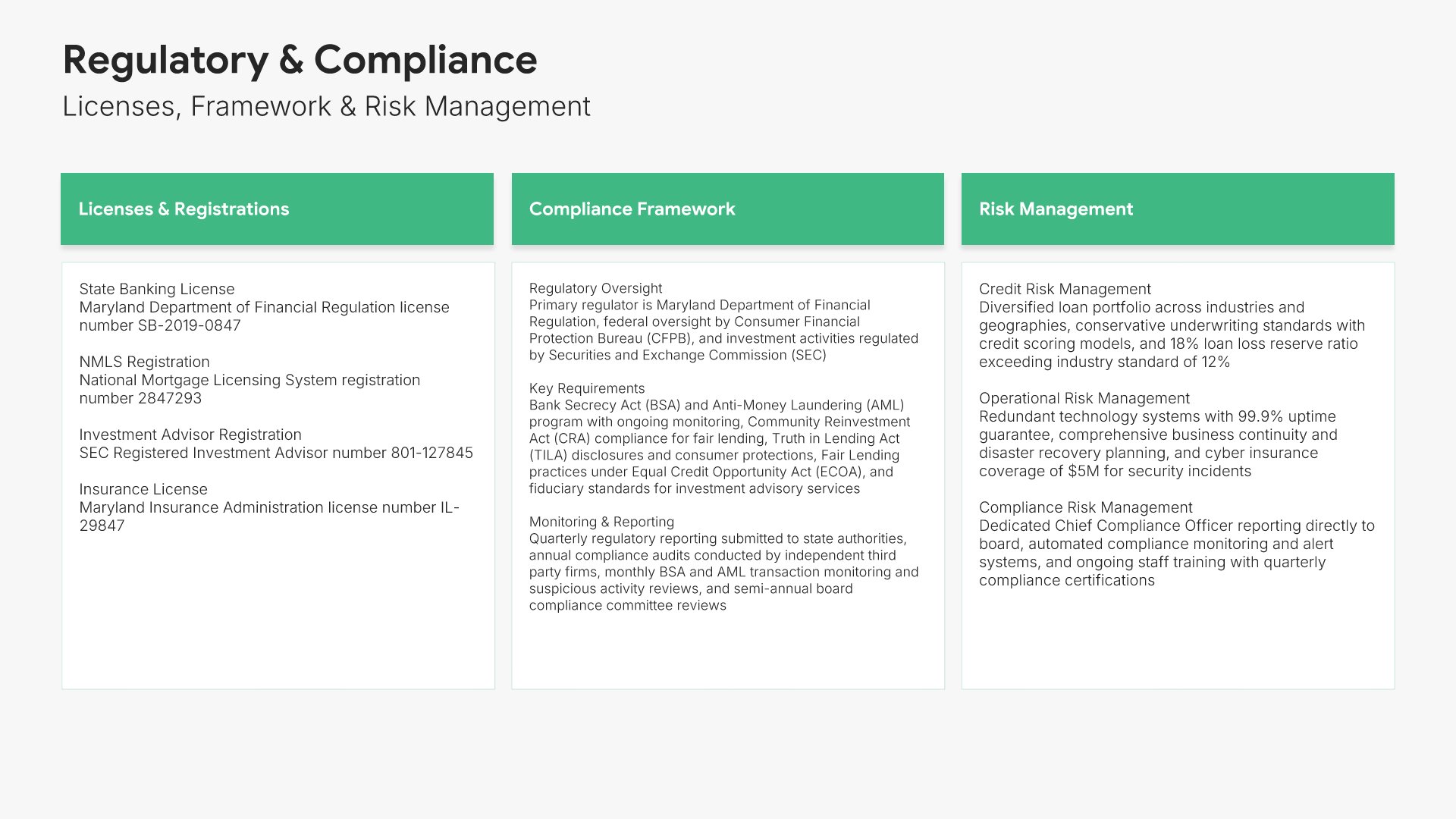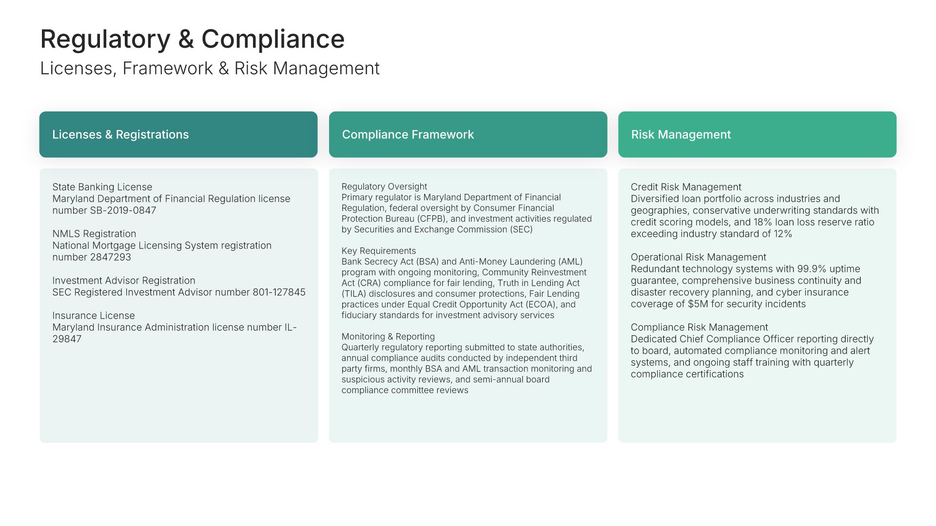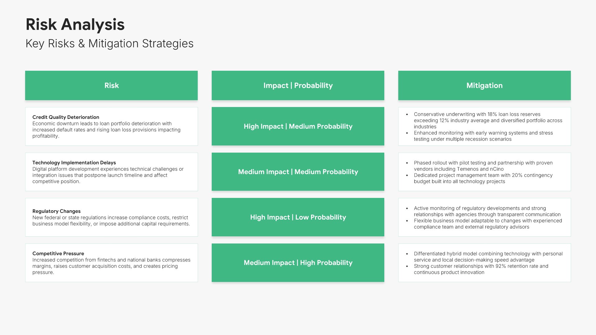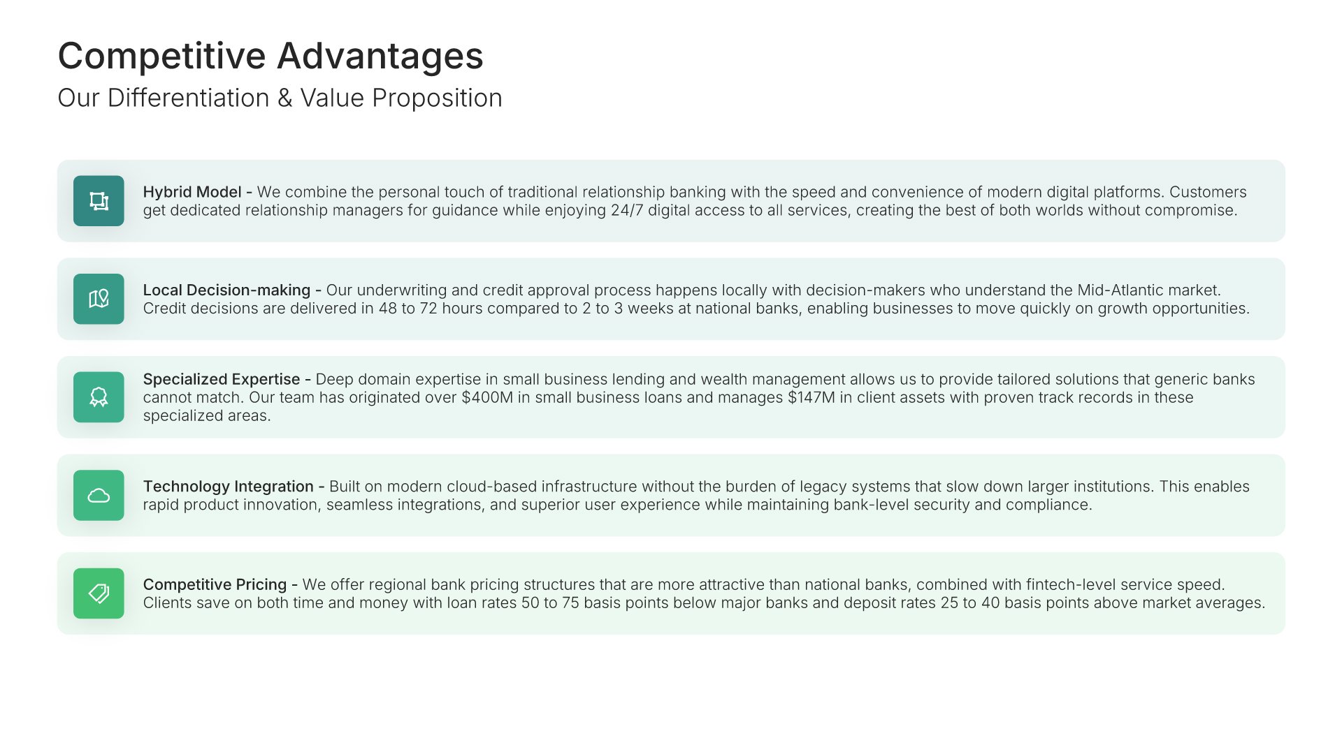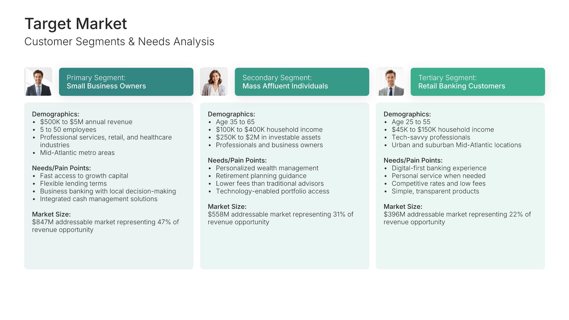 A comprehensive financial services business plan template designed for banks, wealth management firms, and financial advisory companies seeking financing or strategic growth. Built on the Classic SBA Model, this presentation covers products, market analysis, operations, compliance, and detailed financial statements. Ideal for any financial services firm at any stage.
