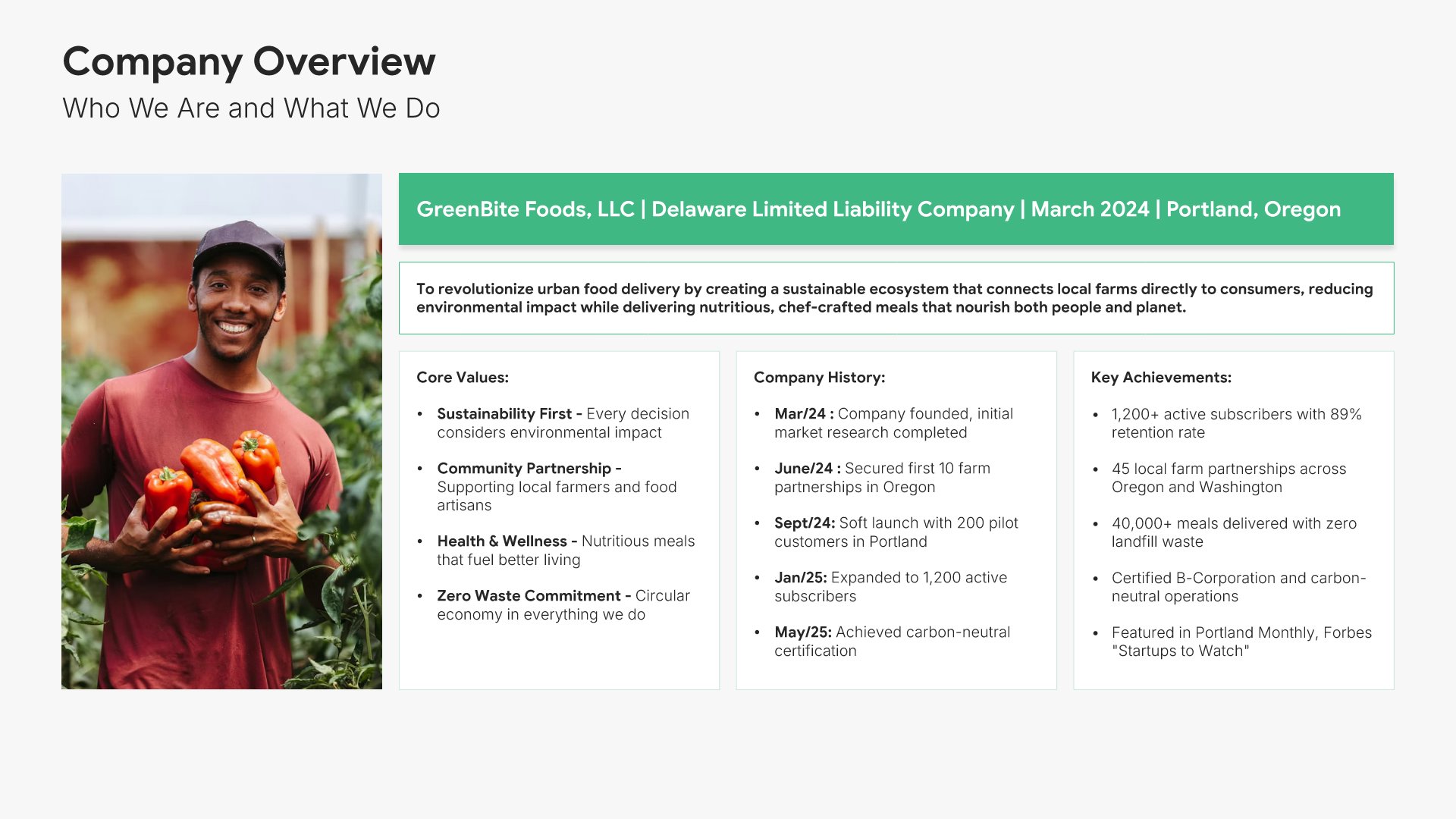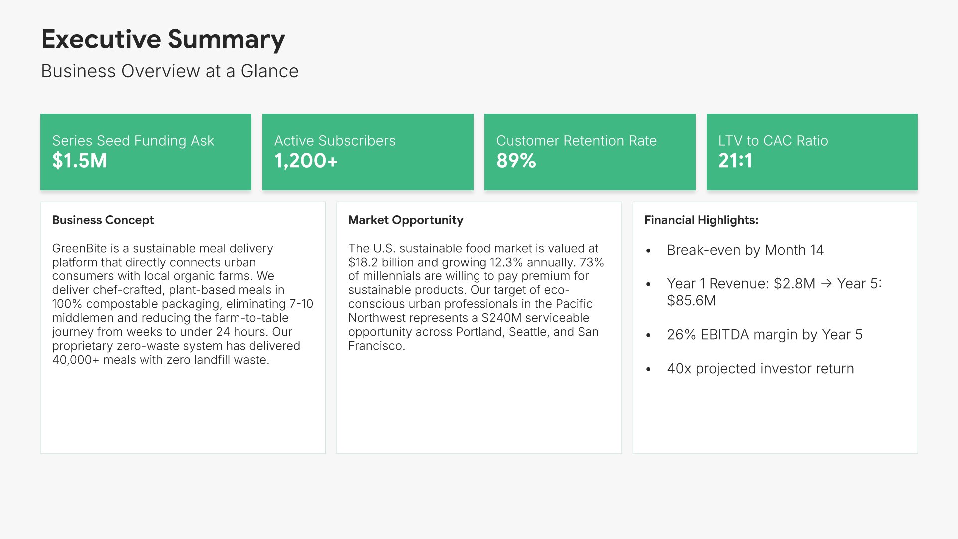 A comprehensive business plan template designed for food and beverage companies seeking funding or strategic growth. Built on the proven SBA Model framework, this presentation covers everything from market analysis to financial projections and funding requests. Ideal for restaurants, cafes, food delivery, and beverage startups.