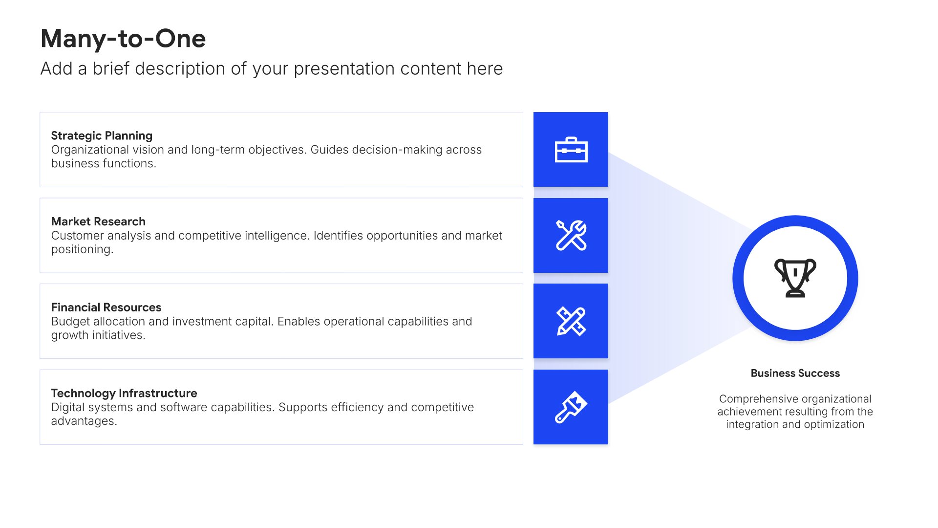 Swap icons and images instantly from our built-in libraries. Use Pointers to choose your count (2-box, 3-box, 4-box) and Variations to pick your design style. No more settling for "close enough." Get the exact slide you need.