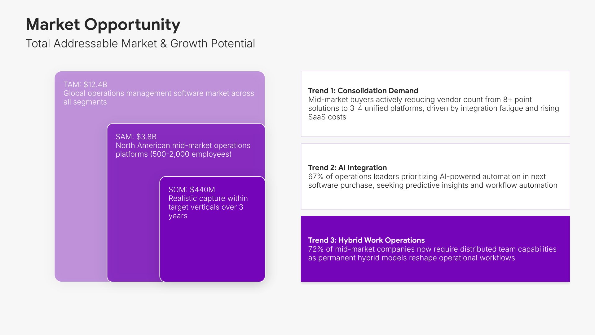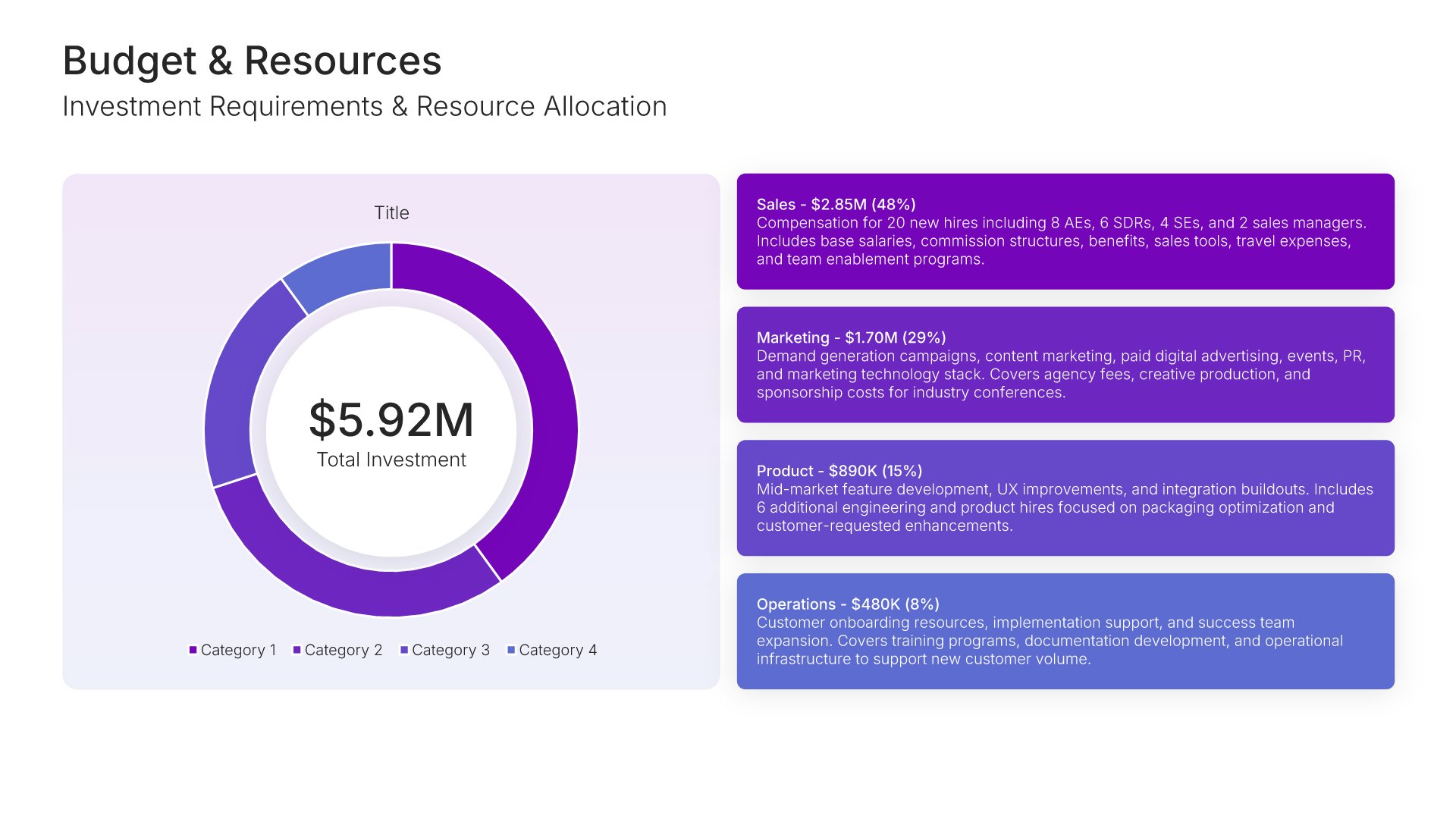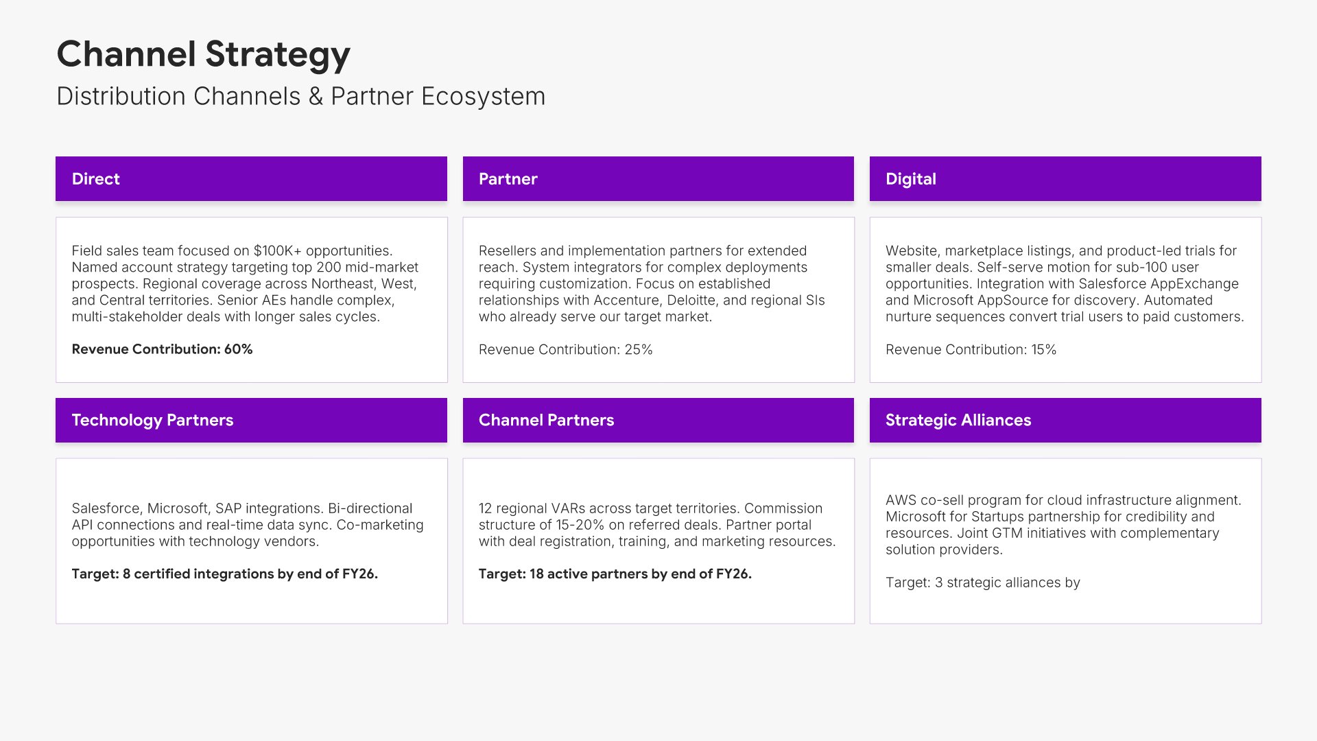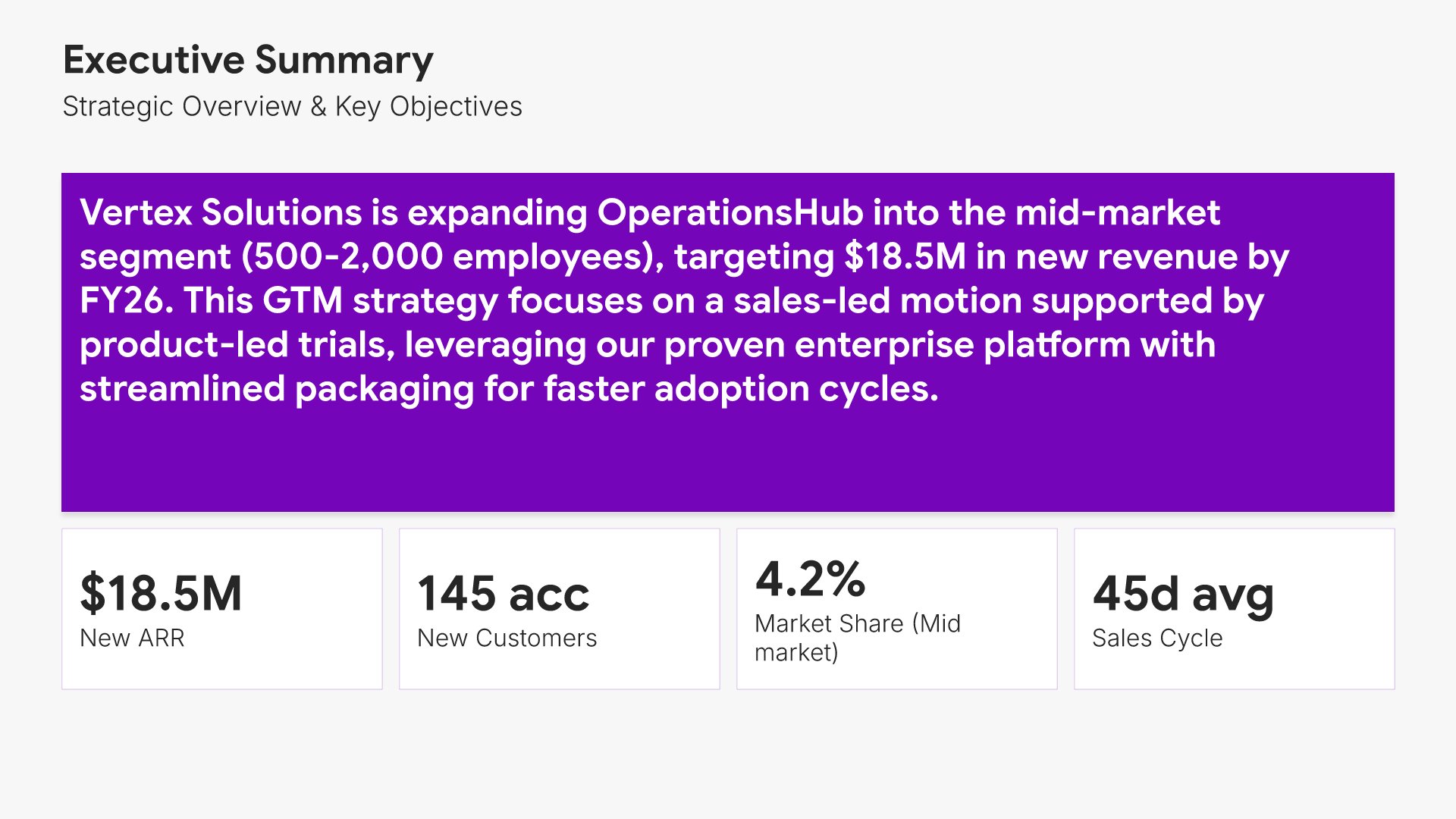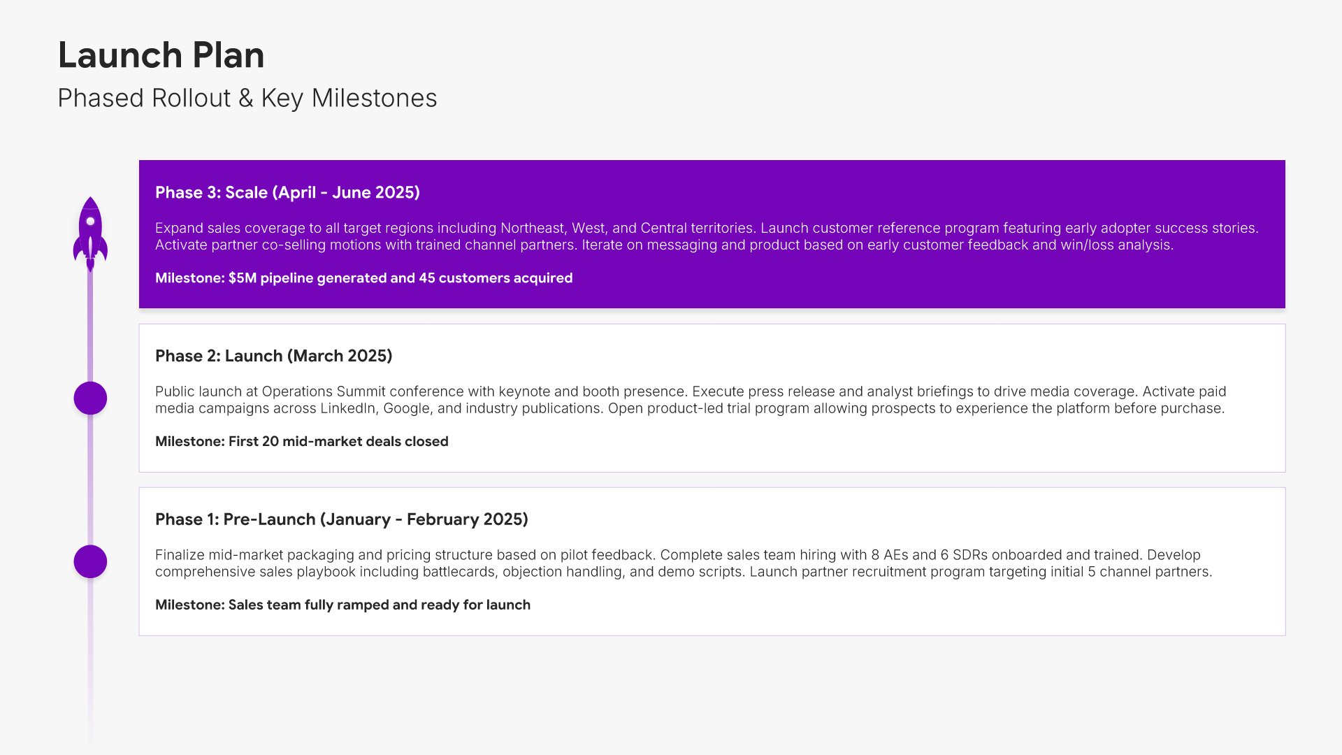 A comprehensive go-to-market strategy presentation following the Classic McKinsey GTM Model, the industry-standard framework for product launches and market expansion. Built for organizations entering new markets or launching new products. Covers market opportunity, customer segmentation, competitive analysis, pricing, sales, and marketing.
