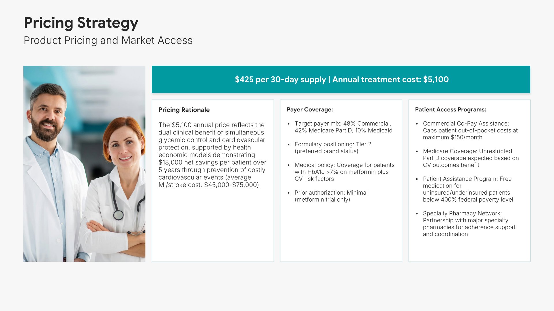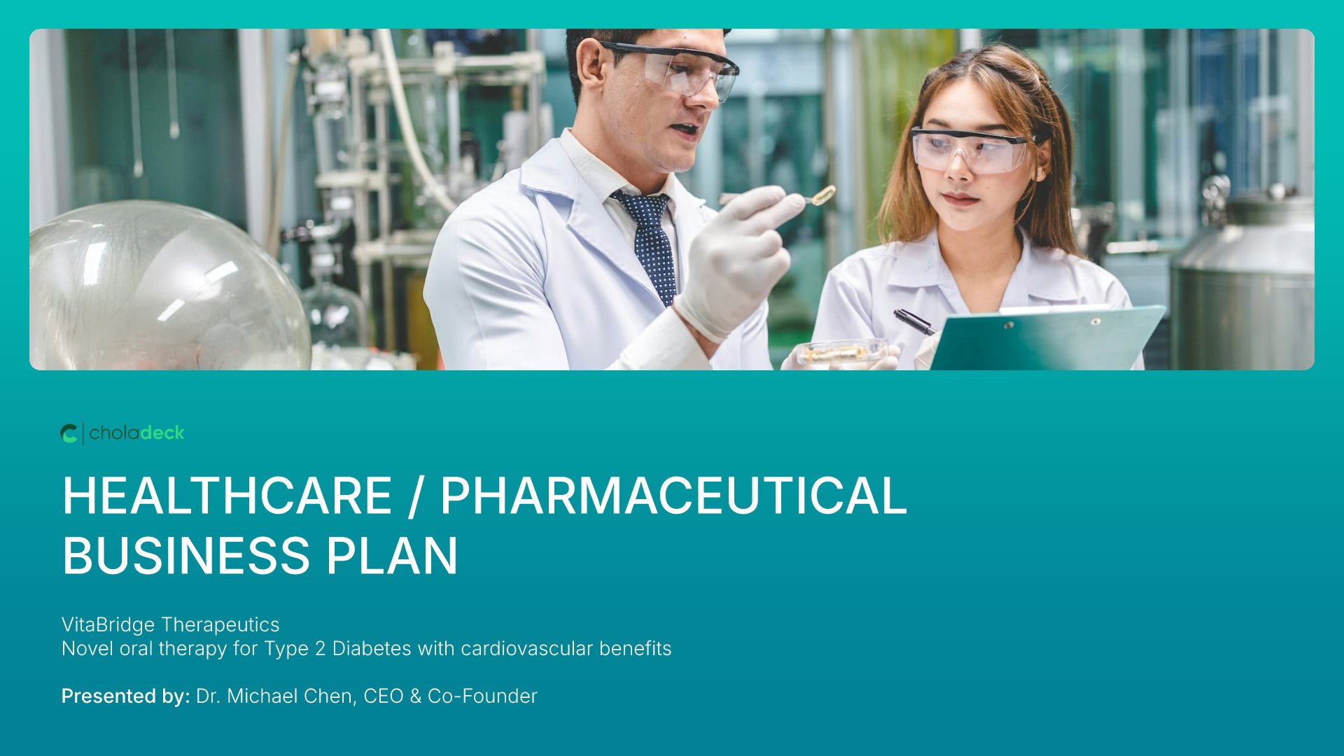 A comprehensive healthcare and pharmaceutical business plan template designed for biotech, pharma, and medical device companies seeking investment or strategic growth. Built on the Classic SBA Model, this presentation covers clinical solution, market opportunity, regulatory strategy, go-to-market plan, and financial projections. Ideal for healthcare and life sciences companies.