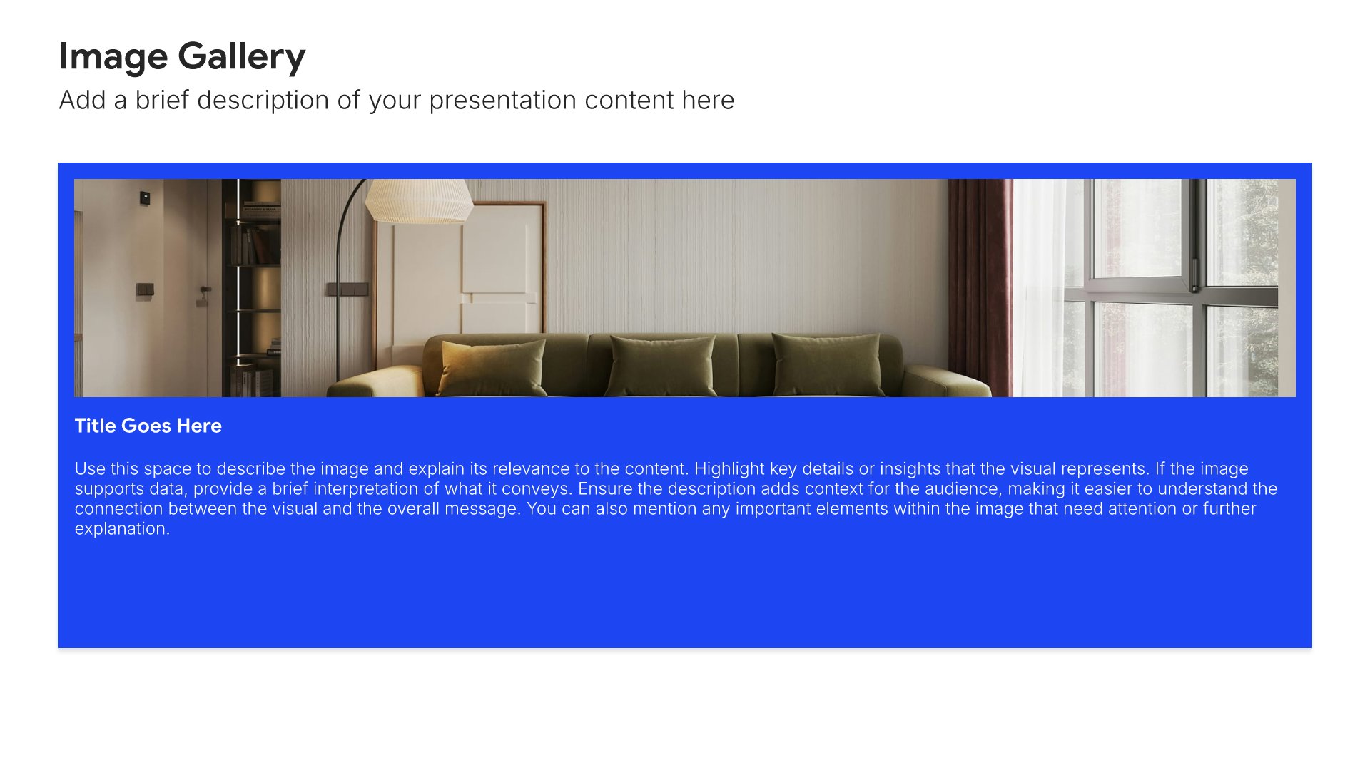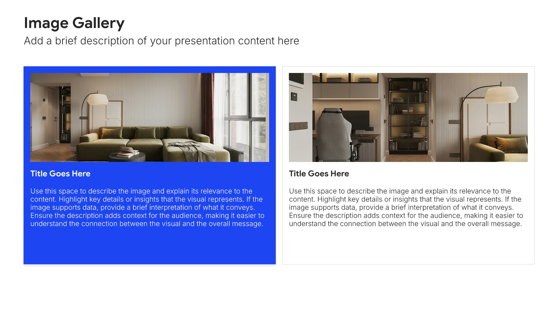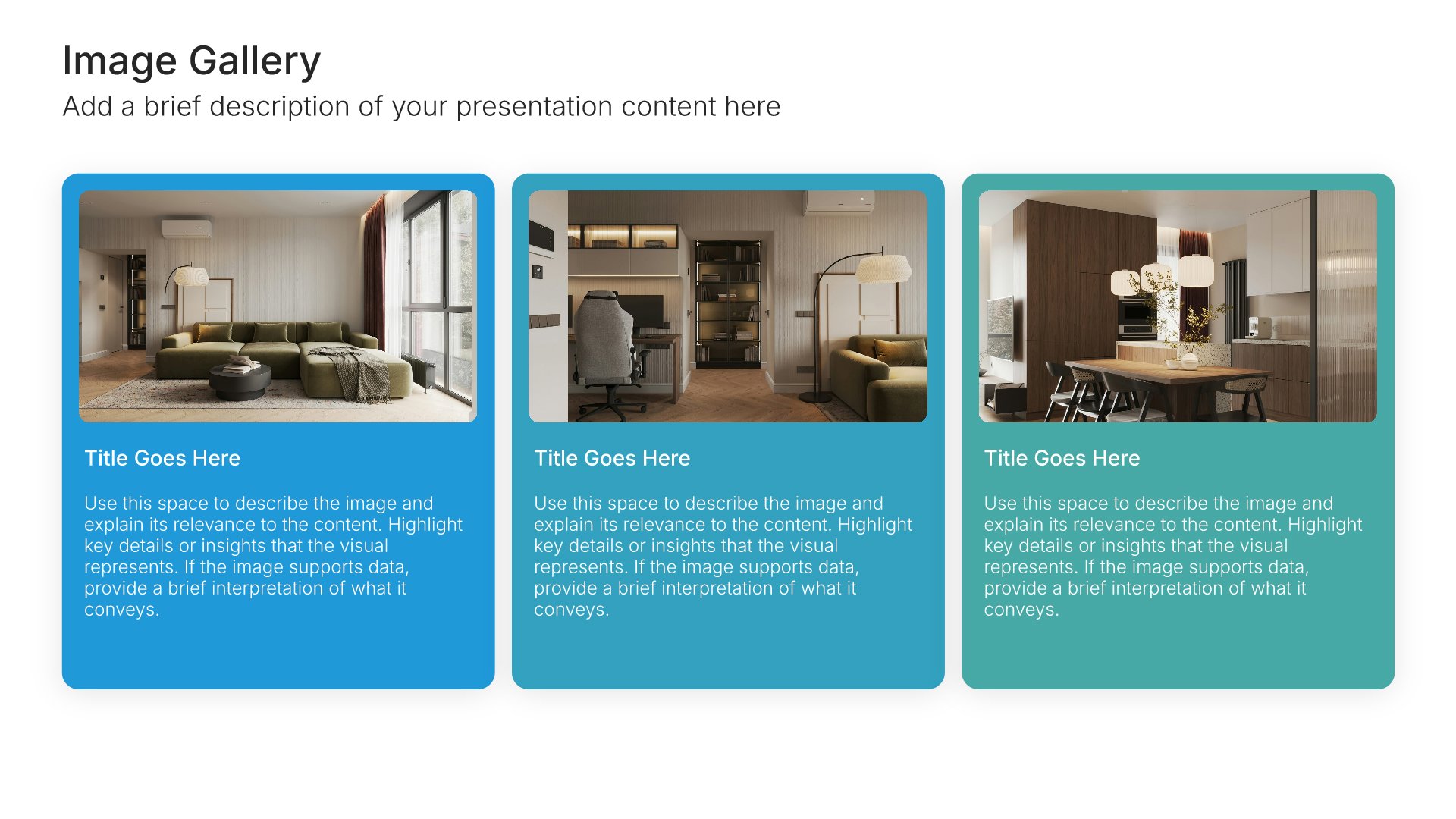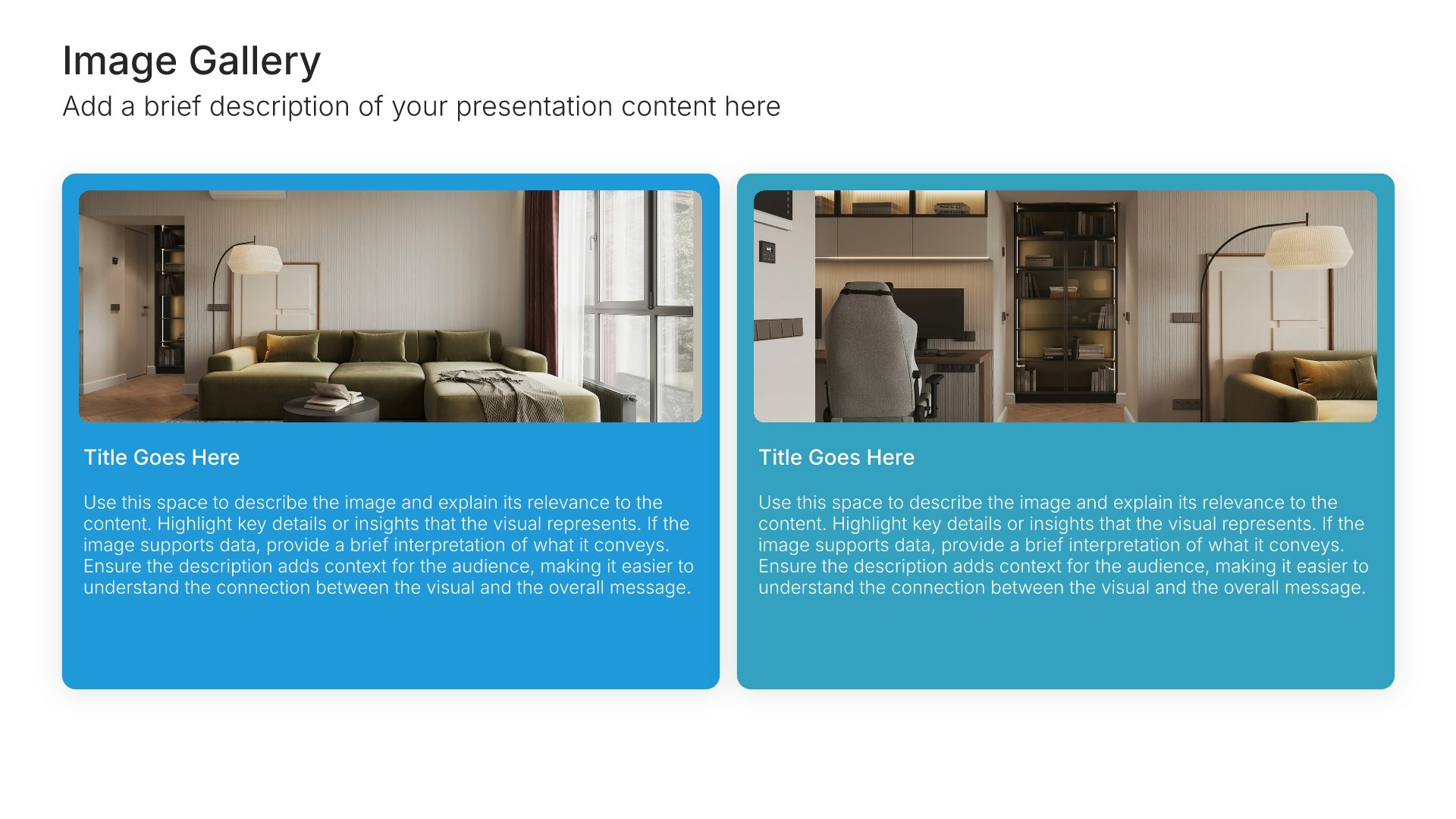 Replace text and image placeholders with your content effortlessly. Customize using tools like Powerpoint, Google Slides, or Keynote and present proudly.