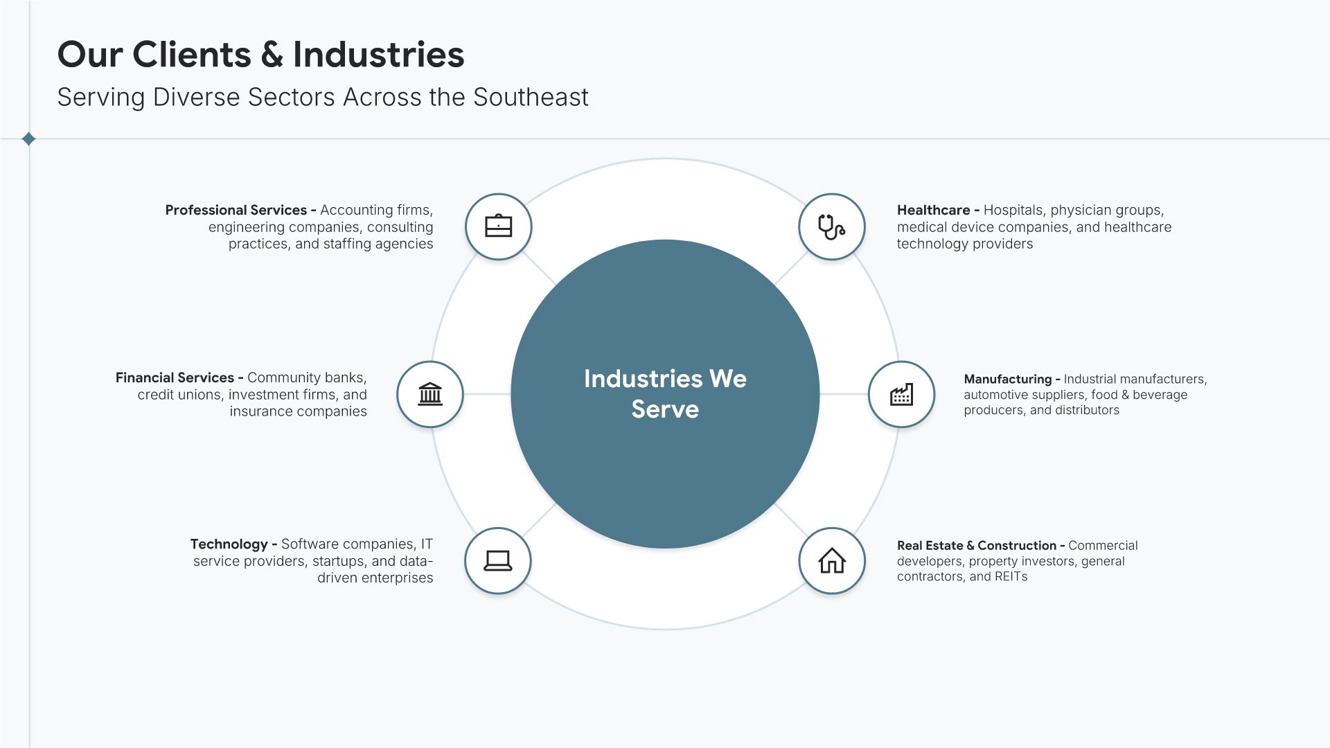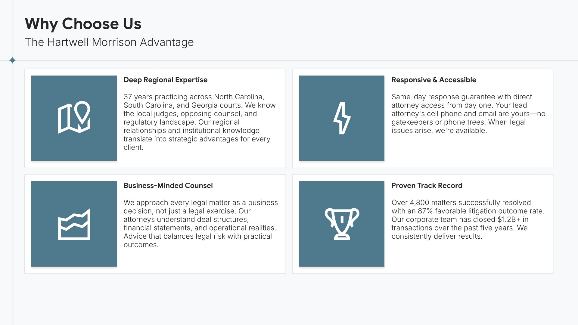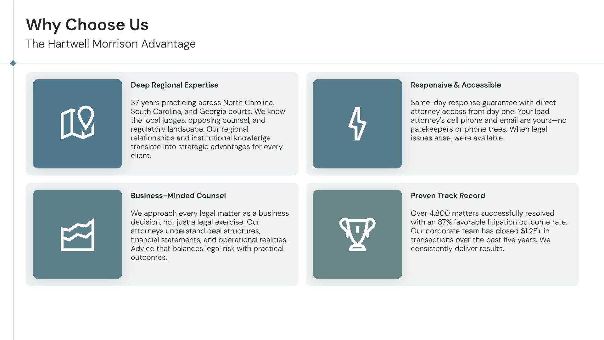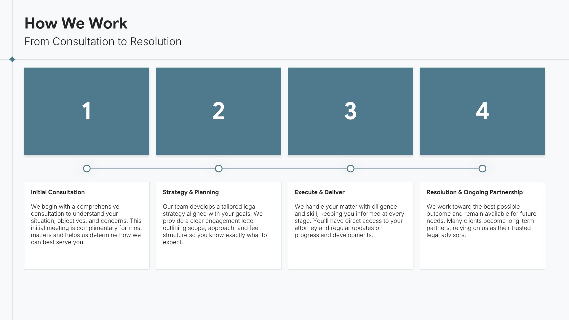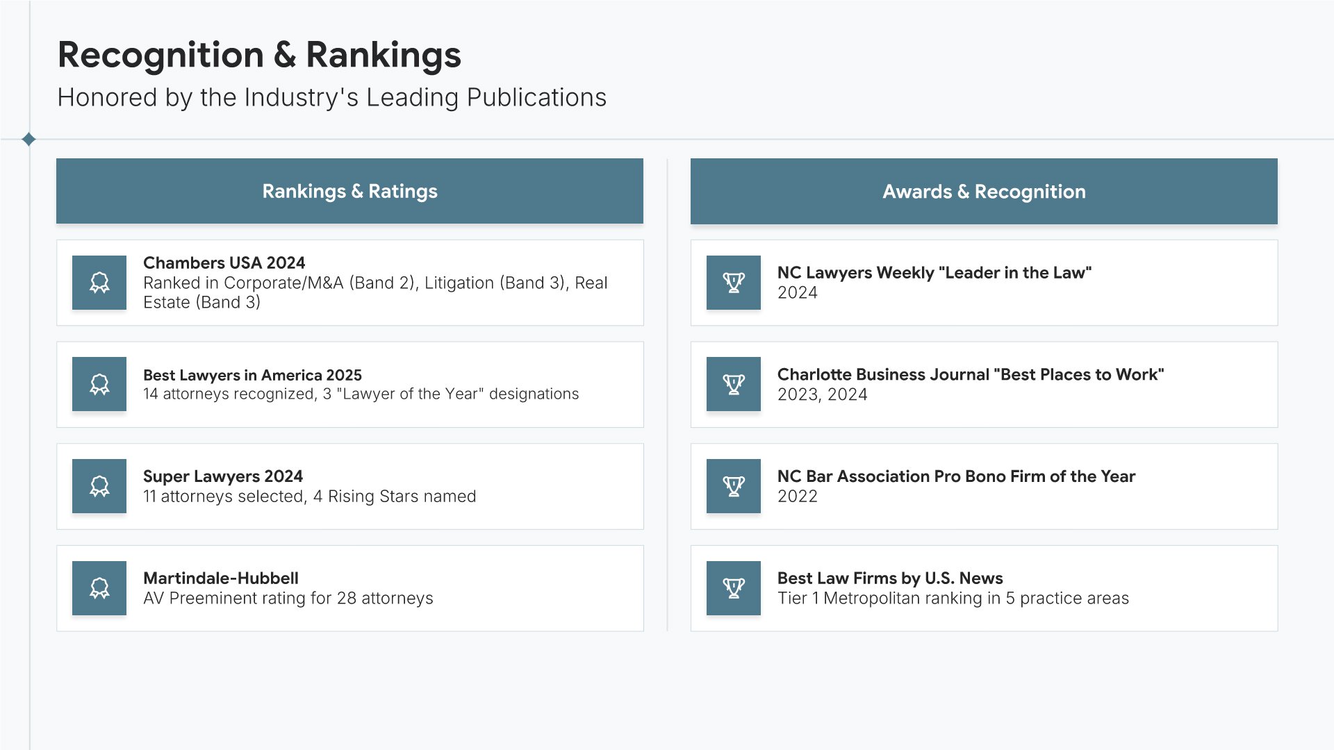 A professionally structured law firm company profile template following the Universal Company Profile framework adapted for legal services. Built for law firms showcasing their practice to prospective clients, referral sources, and partners. Covers firm history, practice areas, methodology, team credentials, client testimonials, and recognition.