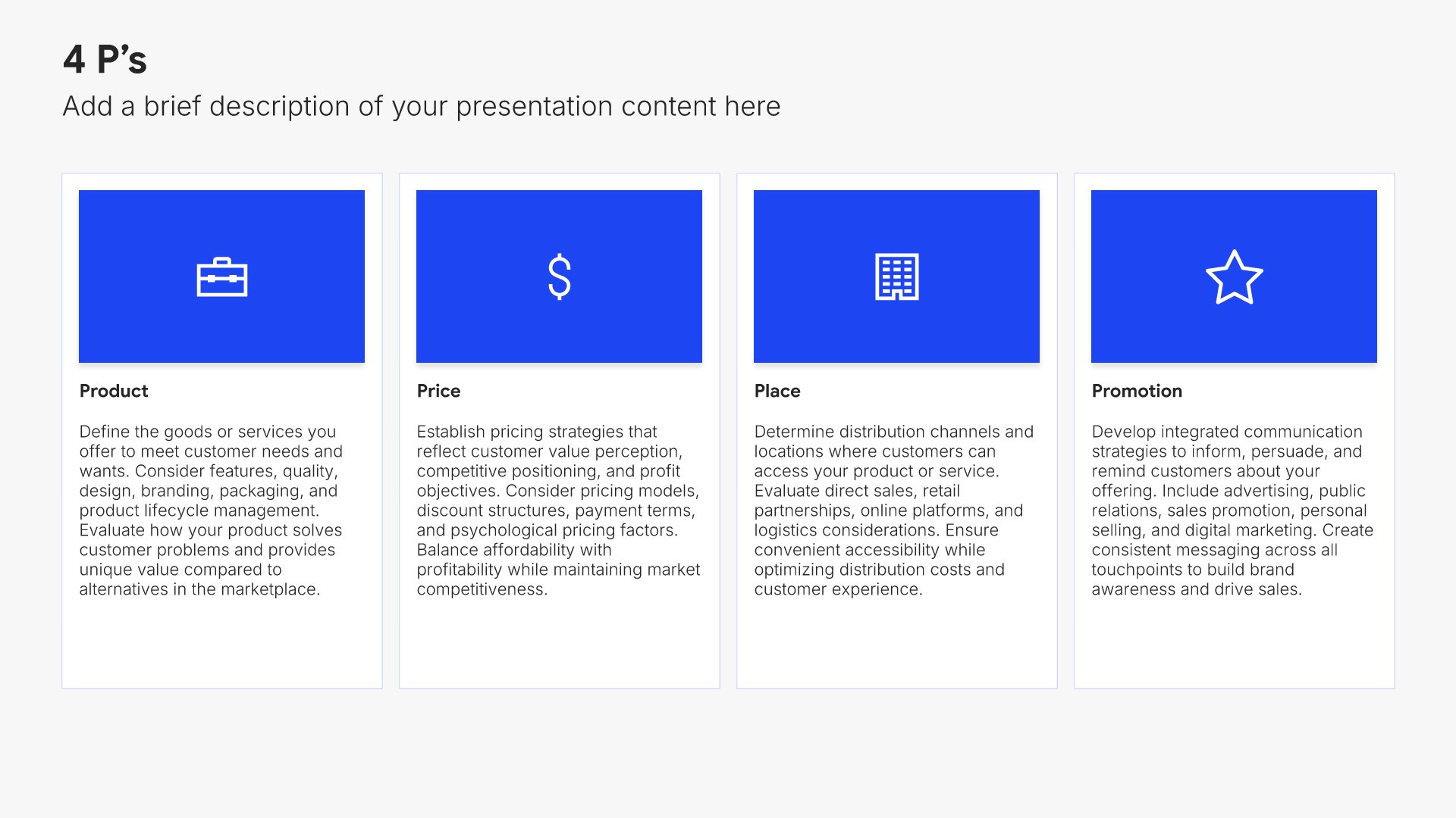 Swap icons and images instantly from our built-in libraries. Use Pointers to choose your count (2-box, 3-box, 4-box) and Variations to pick your design style. No more settling for "close enough." Get the exact slide you need.