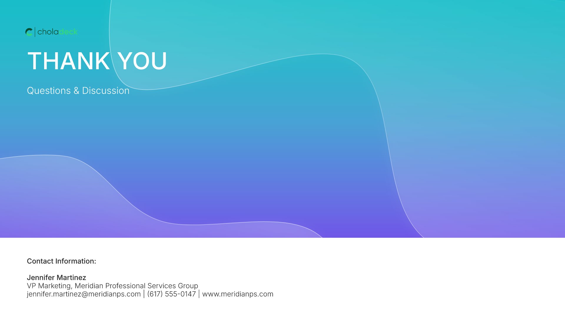 Add your logo, apply your brand colors, choose your fonts, and set custom backgrounds. One click and your entire presentation looks like it was made just for you. Because it was.