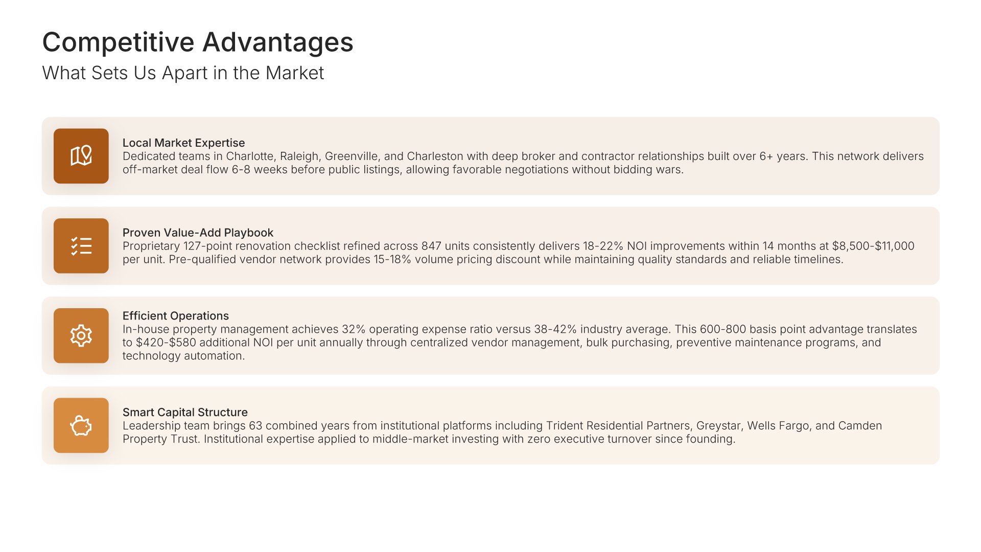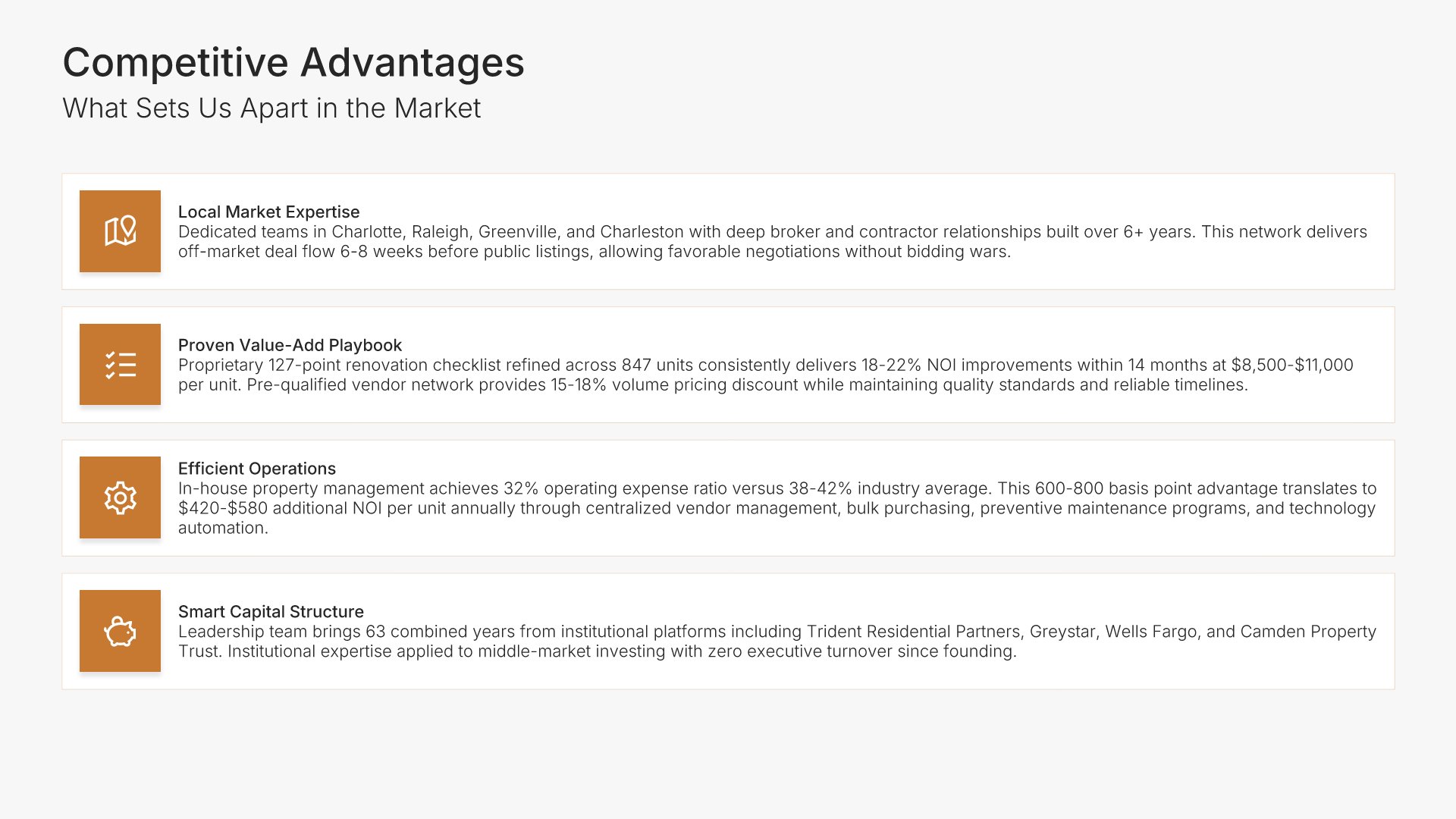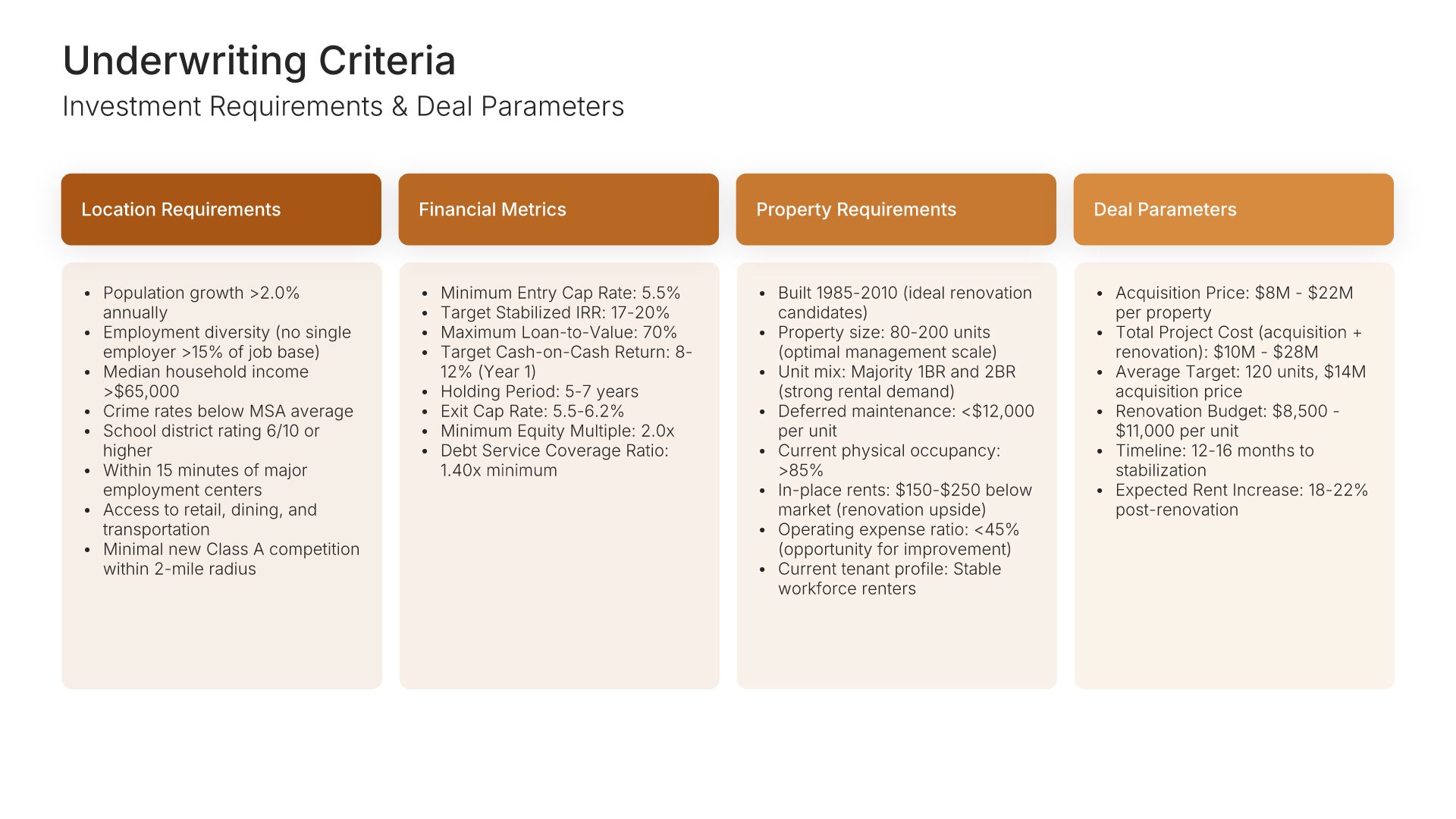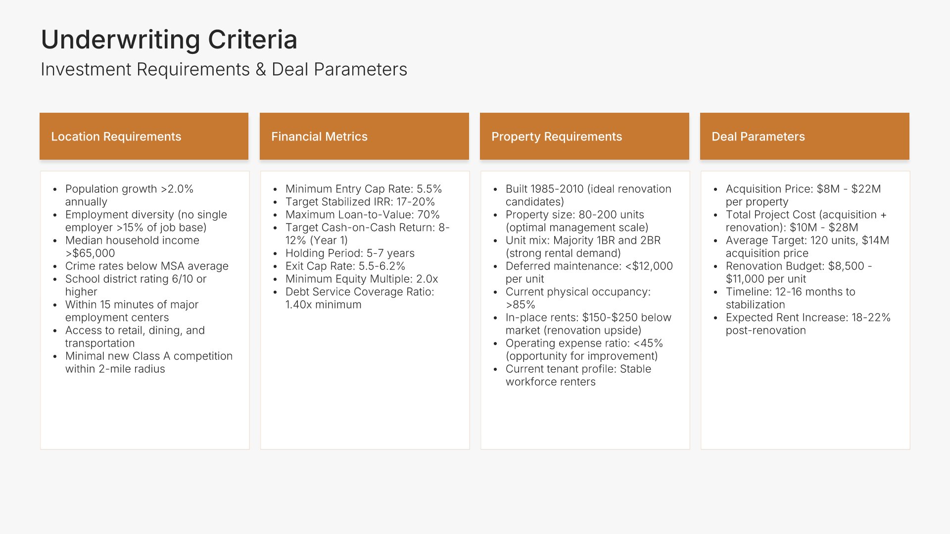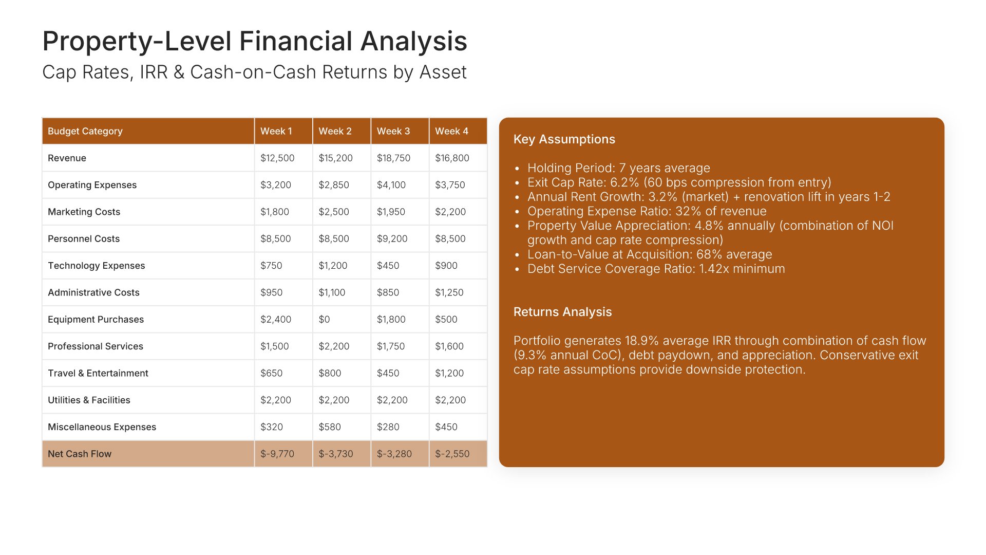 A comprehensive real estate business plan template designed for investment and development firms seeking financing or capital partners. Built on the Classic SBA Lender Model, this presentation covers property portfolio, acquisition strategy, market analysis, revenue model, financial projections, and funding structure. Ideal for multifamily, commercial, and mixed-use real estate firms.
