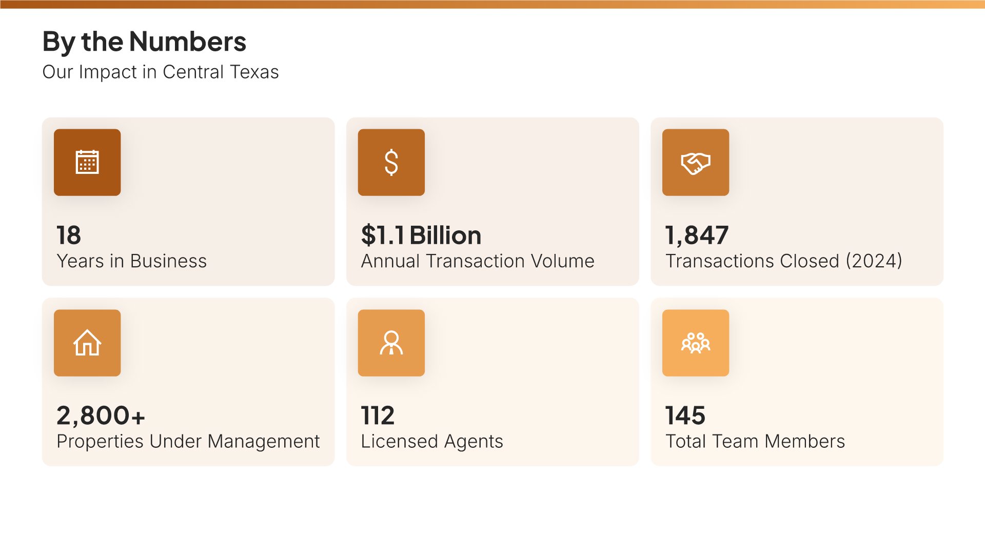 Stats and numbers slides help you showcase your key metrics and achievements at a glance. Use them to present years in business, customers served, team size, and other figures that demonstrate scale and success. Ideal for company profiles where quantifying your impact builds credibility and helps prospects understand your business quickly.