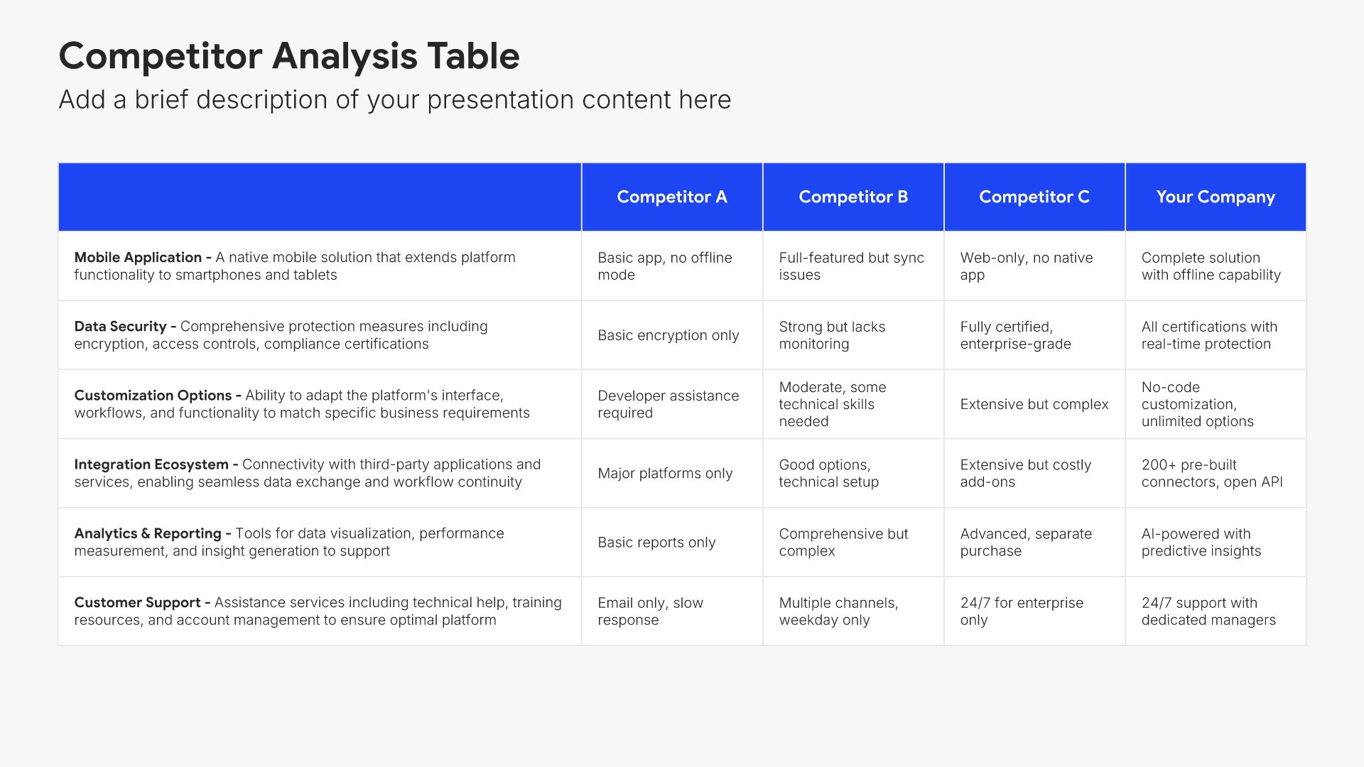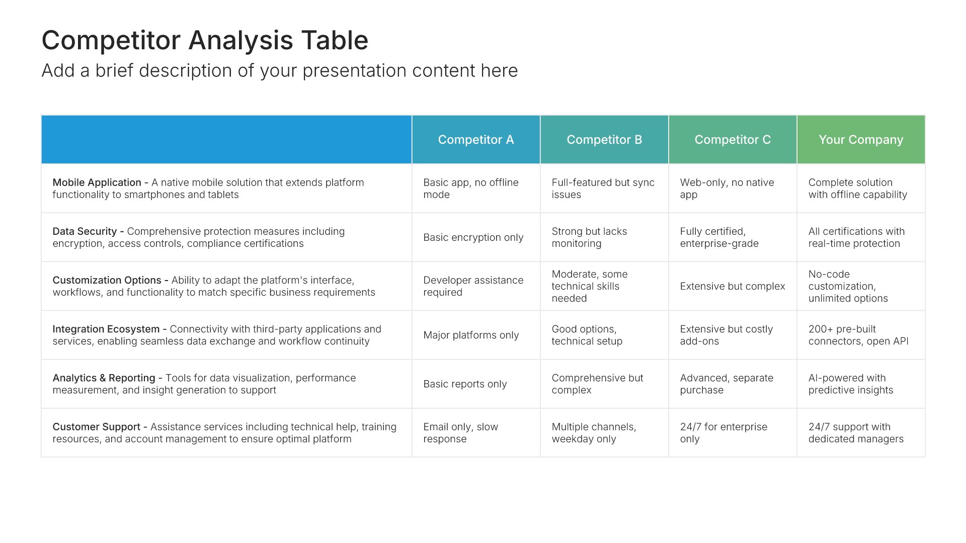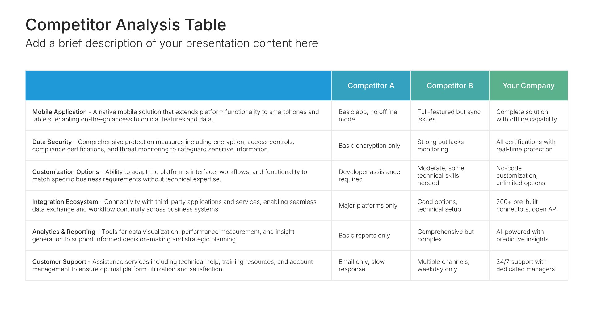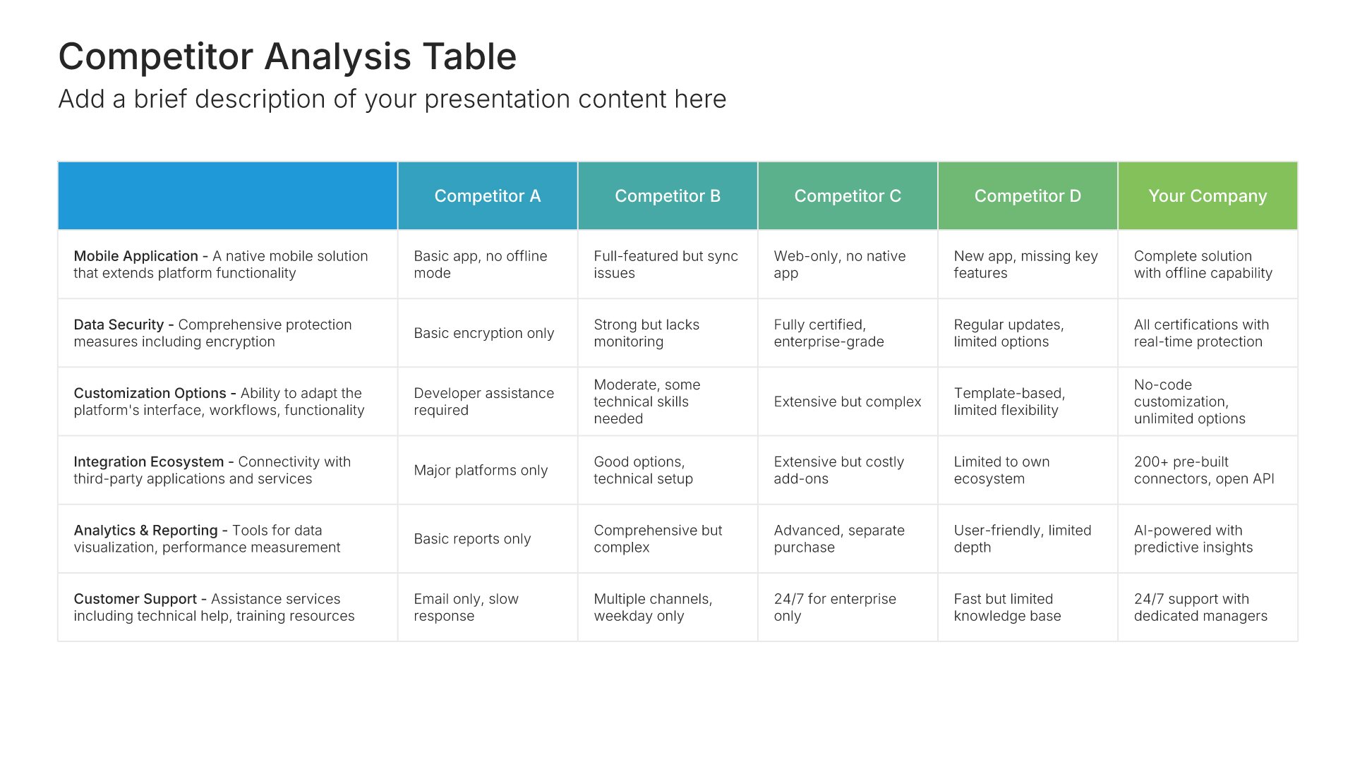 Replace text and image placeholders with your content effortlessly. Customize using tools like Powerpoint, Google Slides, or Keynote and present proudly.