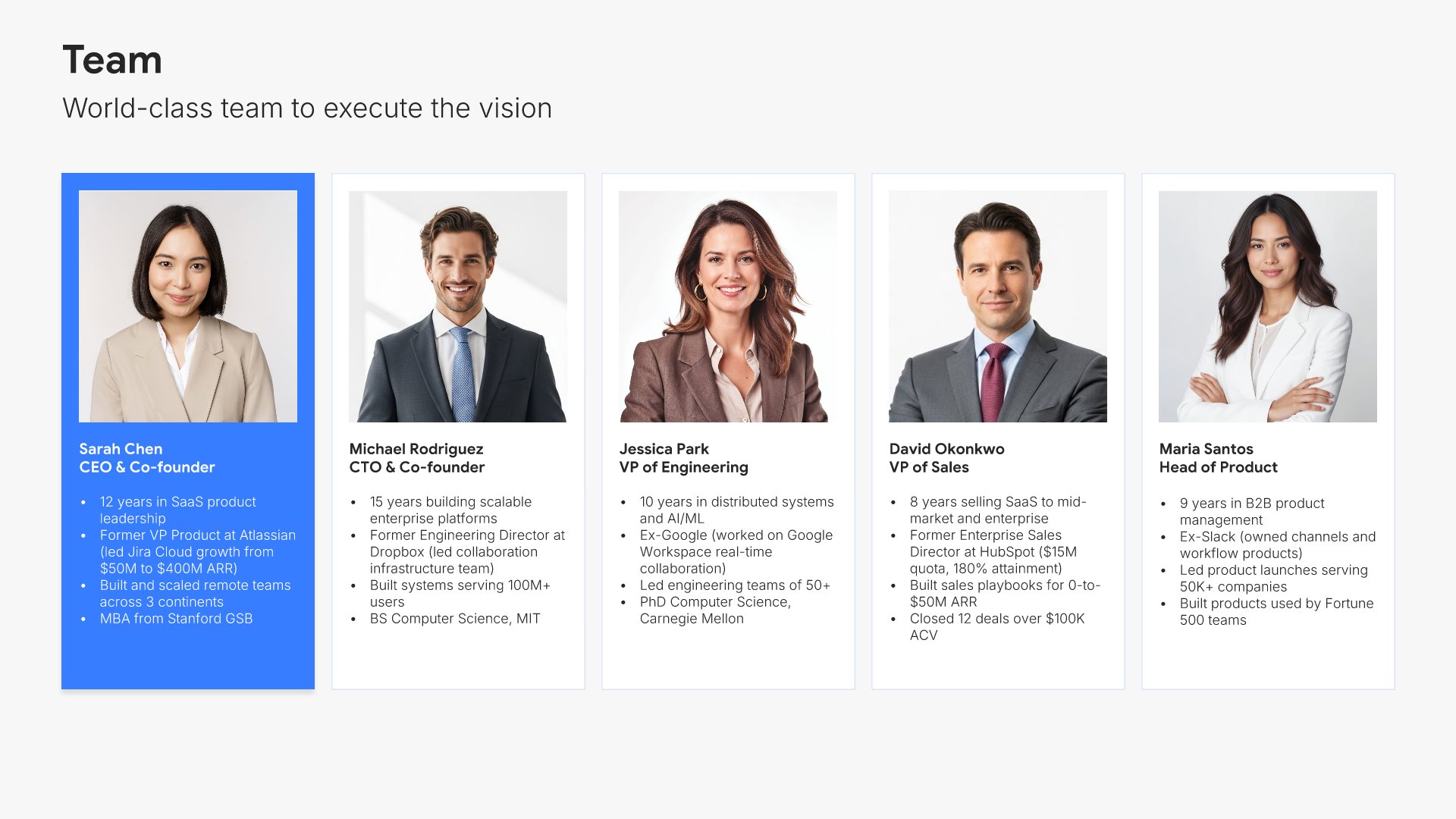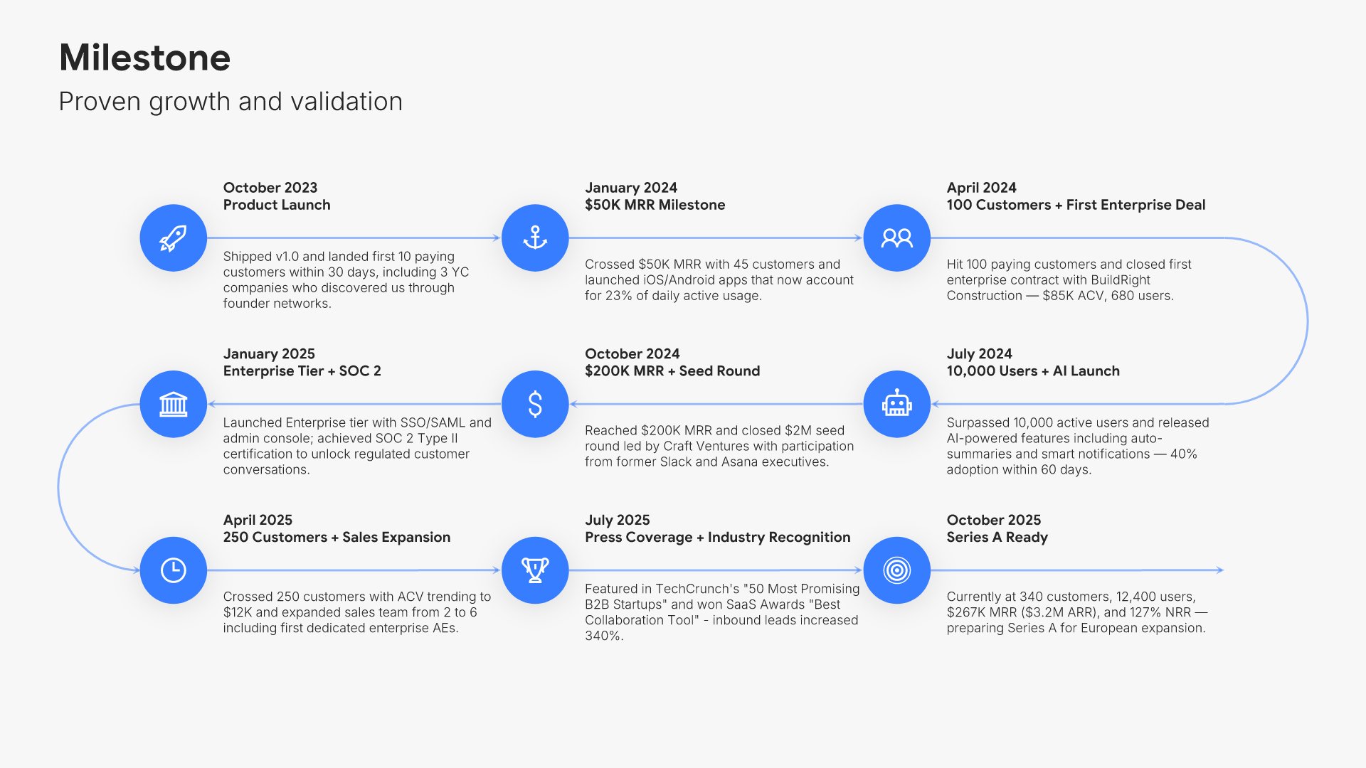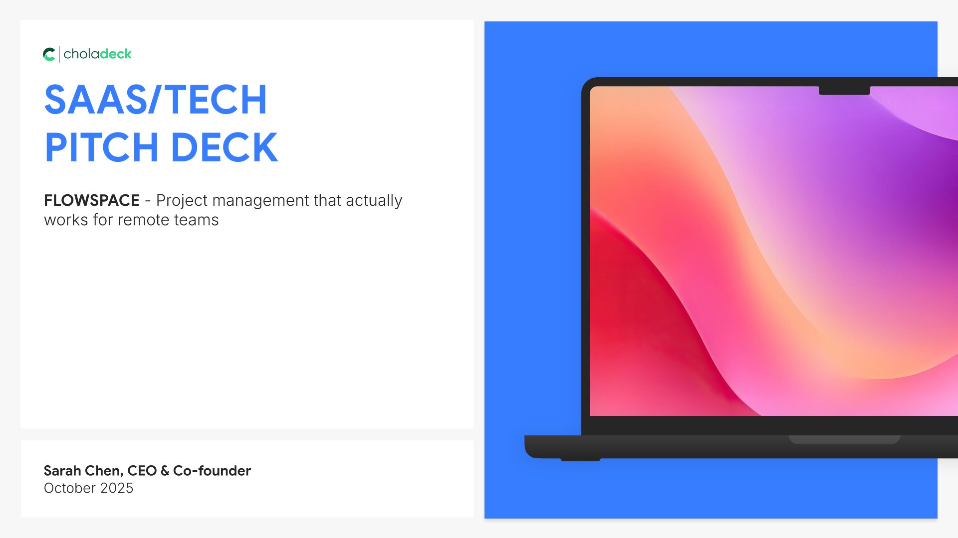 A comprehensive Series A pitch deck template designed for SaaS and technology startups seeking growth-stage funding. Built on the proven Sequoia Model framework, this presentation covers everything investors need to see, from problem-solution fit to financials and the ask. Universally applicable across all industries.