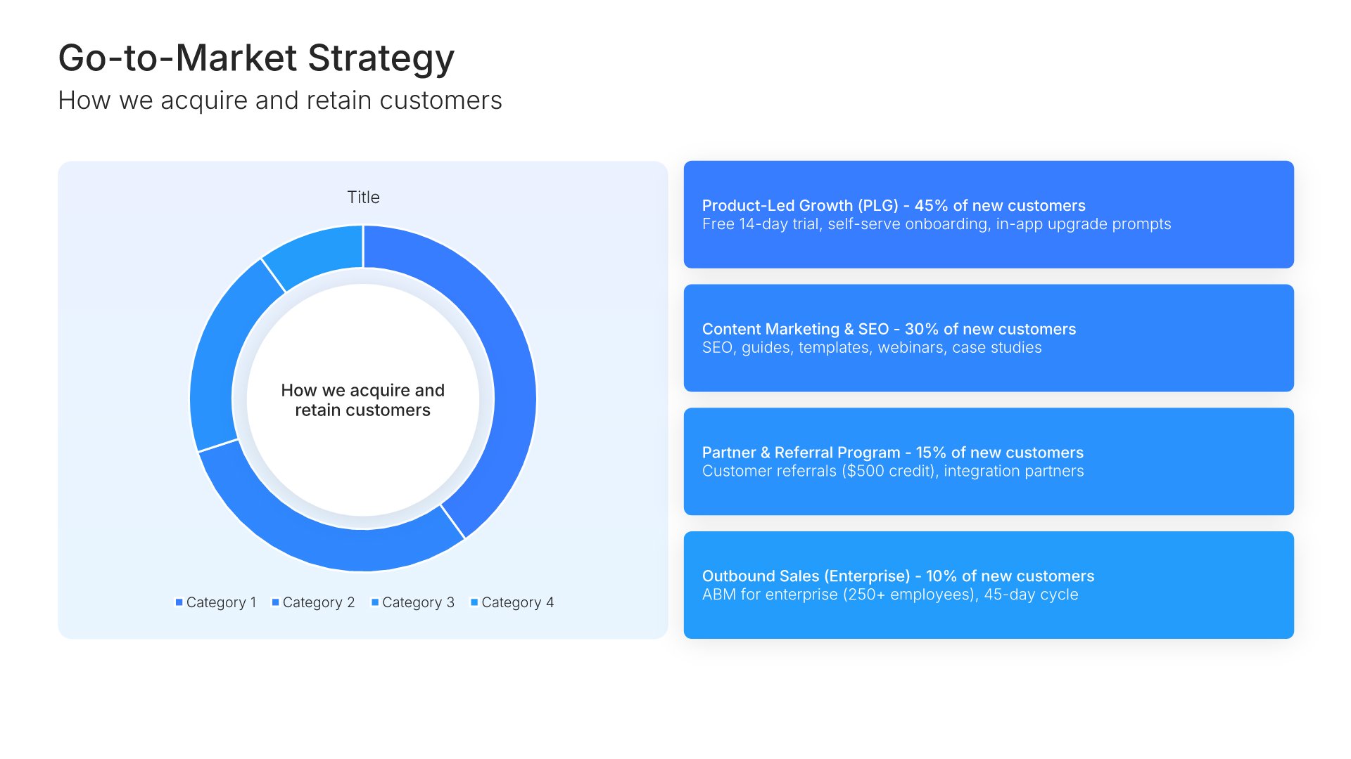 Discover from over 9,172 unique slides in 134 categories or kickstart with 31 premade presentation templates. Design skills? Not needed.