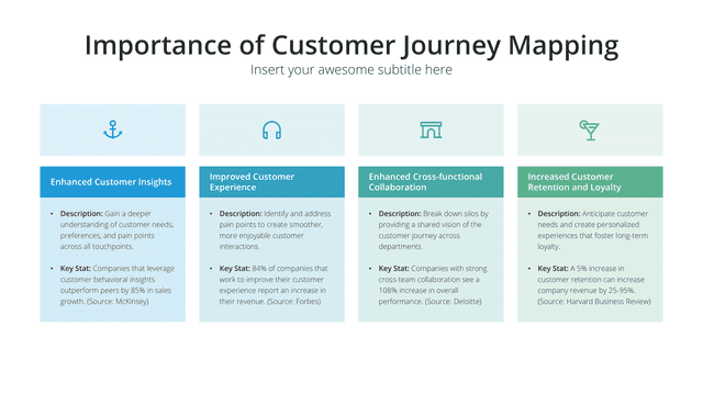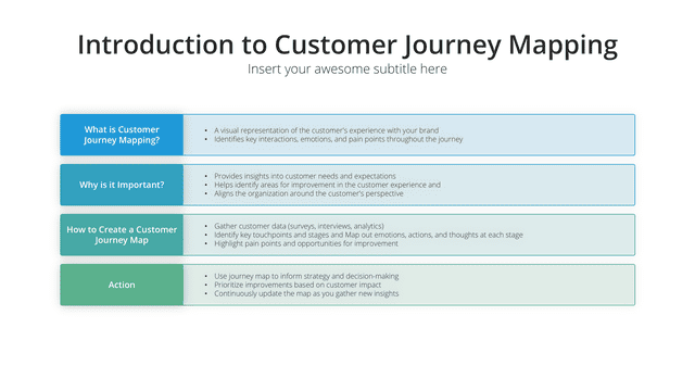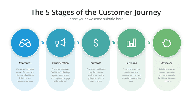 Map out the customer experience with the Customer Journey slide. From awareness to loyalty, it visualizes every touchpoint and interaction, offering insights into customer perceptions and decisions. It’s essential for understanding pain points, optimizing touchpoints, and enhancing overall customer satisfaction.