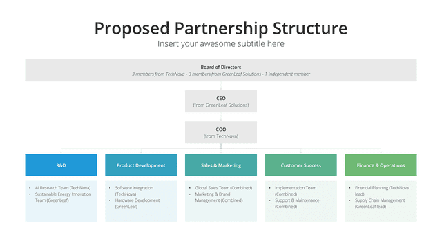 Elevate your partnership pitch with our meticulously crafted Partnership Proposal Presentation Template. Designed for impact and persuasion, this template provides a comprehensive framework to articulate collaboration opportunities, mutual benefits, and strategic alignment between entities. Each slide is purposefully structured to showcase the value proposition of the proposed partnership, ensuring your vision for collaboration resonates with potential partners and stakeholders, paving the way for successful alliances.