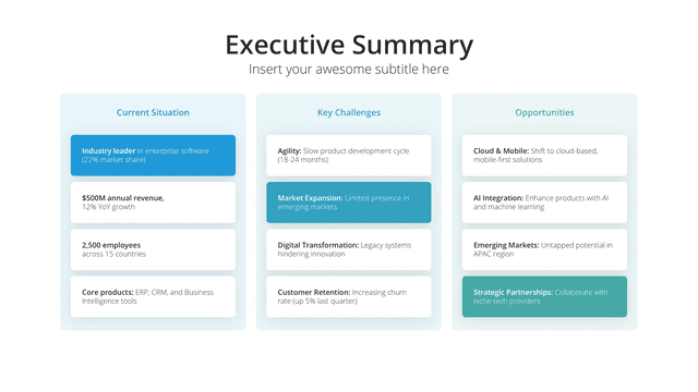 Replace text and image placeholders with your content effortlessly. Customize using tools like Powerpoint, Google Slides, or Keynote and present proudly.