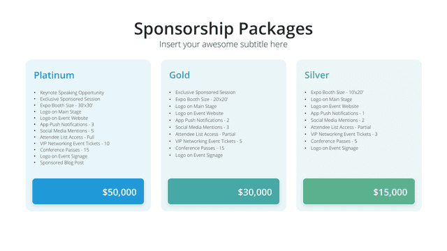 Detail your product or service costs with the Pricing slide. Offering clarity on value propositions, packages, or tiers, it ensures potential clients or customers understand their options and the associated costs.