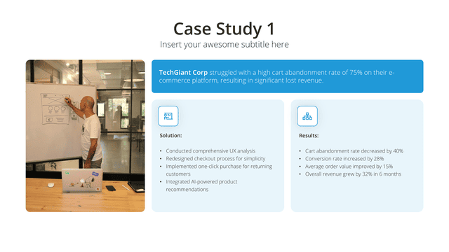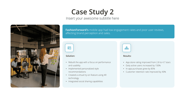 Replace text and image placeholders with your content effortlessly. Customize using tools like Powerpoint, Google Slides, or Keynote and present proudly.