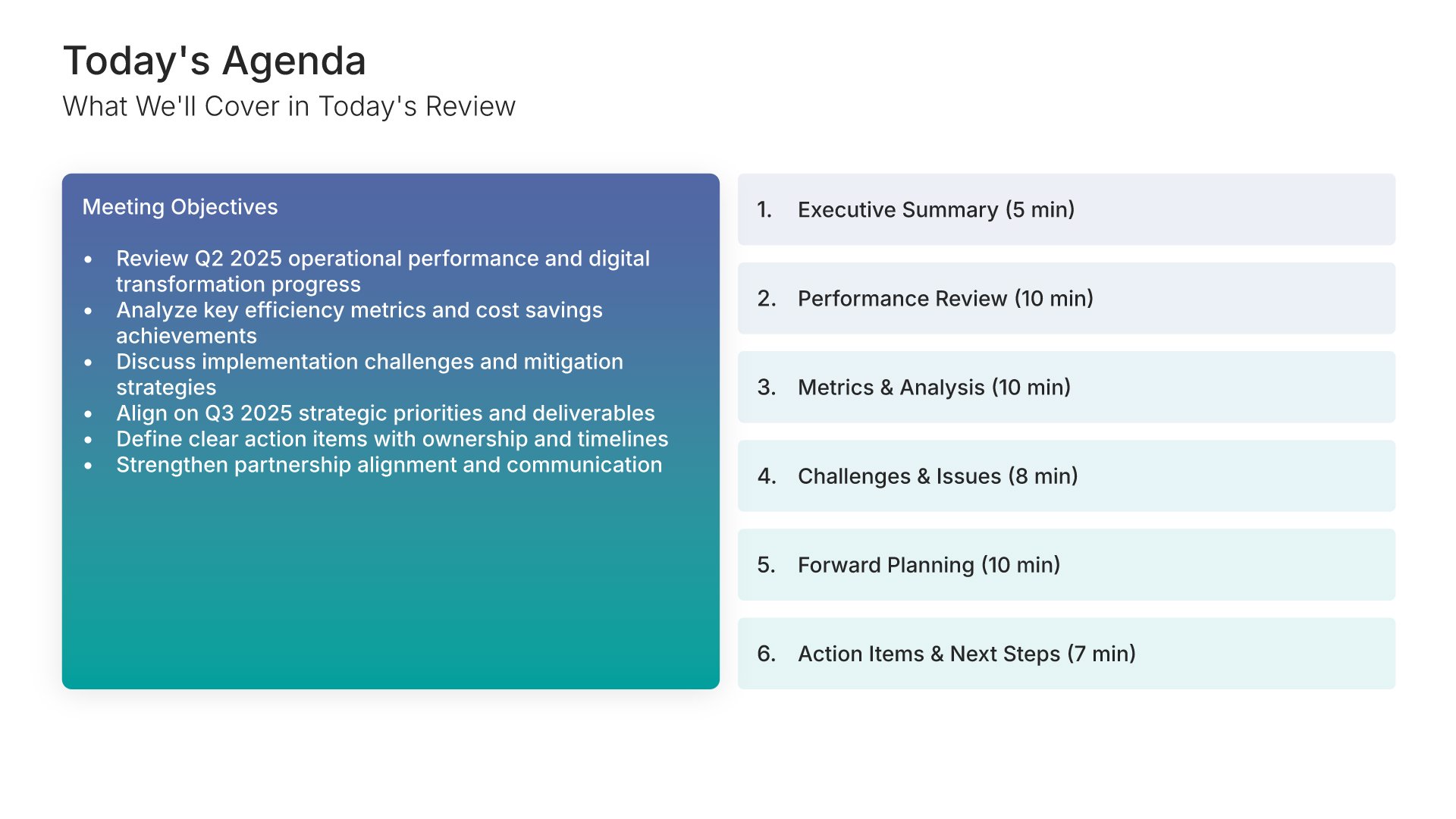 A comprehensive quarterly business review template designed for service providers presenting performance updates to clients. Built on the Classic Client QBR framework, this presentation covers everything from metrics dashboards to strategic recommendations and action items. Ideal for consulting firms, agencies, and B2B service providers.