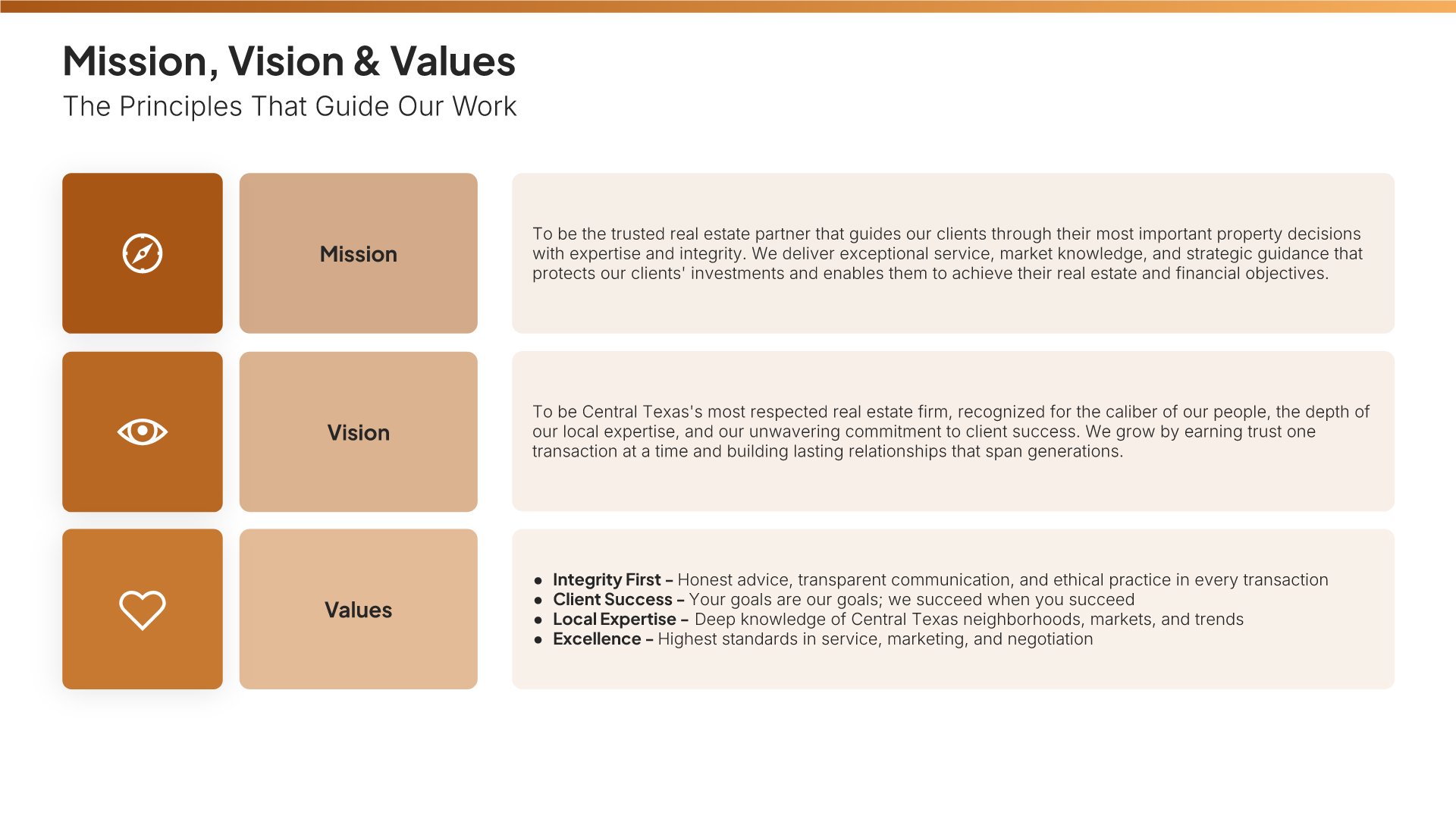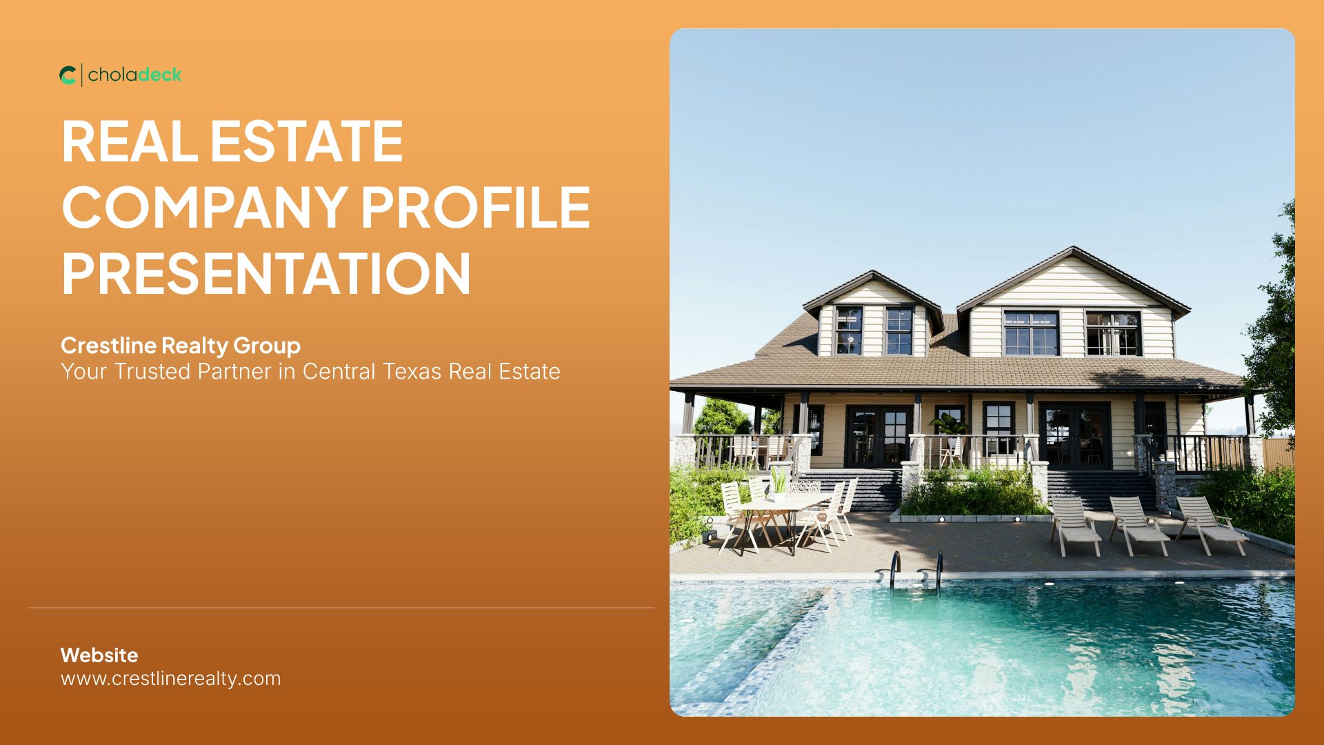 A professionally structured real estate company profile template following the Universal Company Profile framework adapted for real estate firms. Built for brokerages and agencies showcasing their services to clients, investors, and partners. Covers firm history, services, methodology, team credentials, testimonials, portfolio, and affiliations.